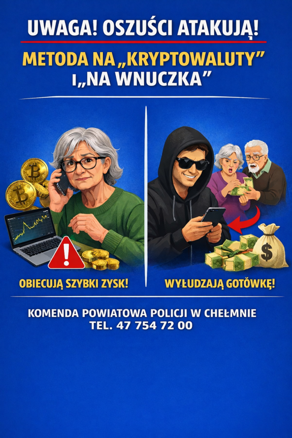 Okres świąteczny to czas wzmożonej aktywności oszustów, którzy wykorzystują życzliwość, pośpiech i zaufanie osób starszych. Policjanci z Komendy Powiatowej Policji w Chełmnie apelują o szczególną ostrożność i przypominają, jak nie dać się oszukać.