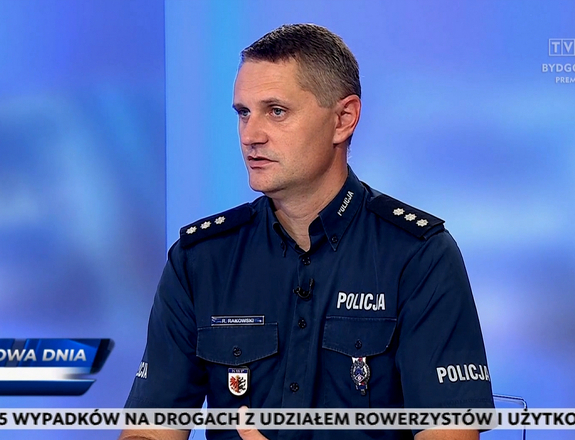Policjant ruchu drogowego w programie „Rozmowa dnia” w TVP Bydgoszcz