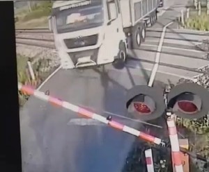 Niebezpieczne zachowanie na przejeździe kolejowym