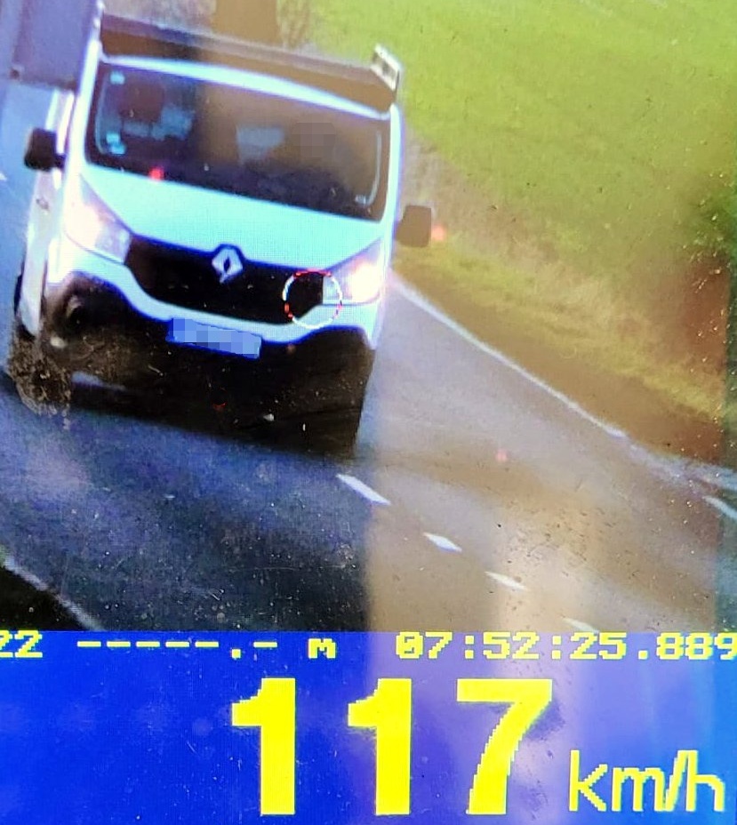 W sobotę (08.02.25) w godzinach porannych policjanci wydziału ruchu drogowego kontrolowali prędkość, z jaką poruszały się pojazdy na terenie miejscowości Wawrzynki w gminie Żnin. Zatrzymali wówczas 47-latka, który samochodem marki Renault Trafic jechał 117 km/h w obszarze zabudowanym, a tym samym przekroczył dozwoloną prędkość o 67 km/h.
