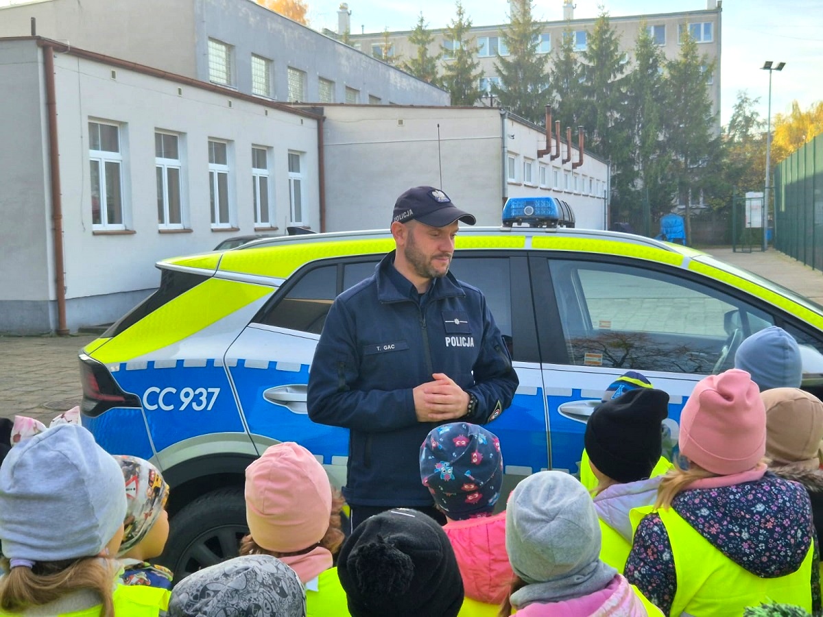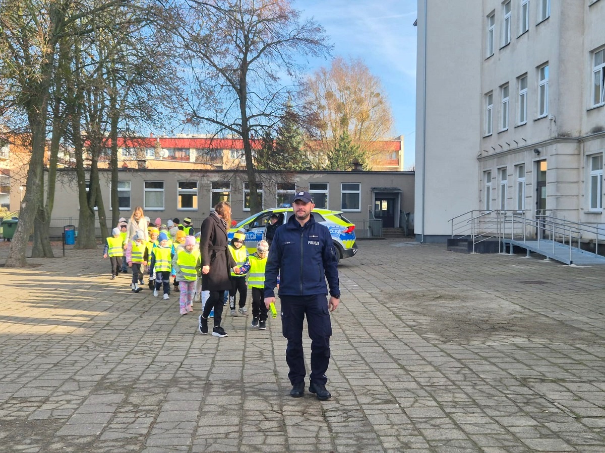 W ramach konkursu „Odblaskowa szkoła” uczniowie Szkoły Podstawowej nr 2 w Tucholi uczestniczyli w wyjątkowych zajęciach poświęconych bezpieczeństwu na drodze. Na tym wydarzeniu nie zabrakło również policjanta z tucholskiej jednostki. Funkcjonariusz wspólnie z dziećmi rozdawał odblaski napotkanym mieszkańcom. Stróż prawa podkreślał, że noszenie elementów odblaskowych jest bardzo ważne, gdyż pomagają one kierowcom dostrzec pieszego z odpowiedniej odległości.