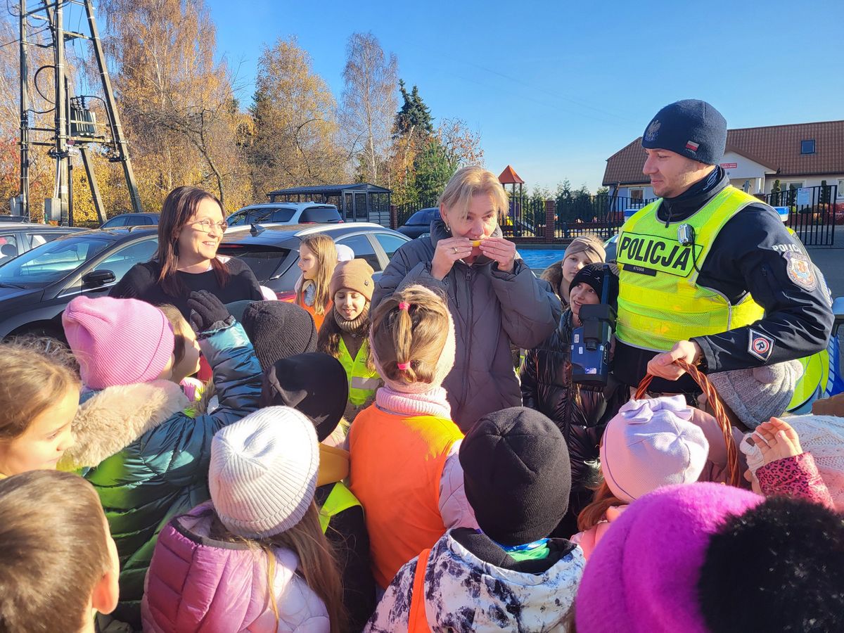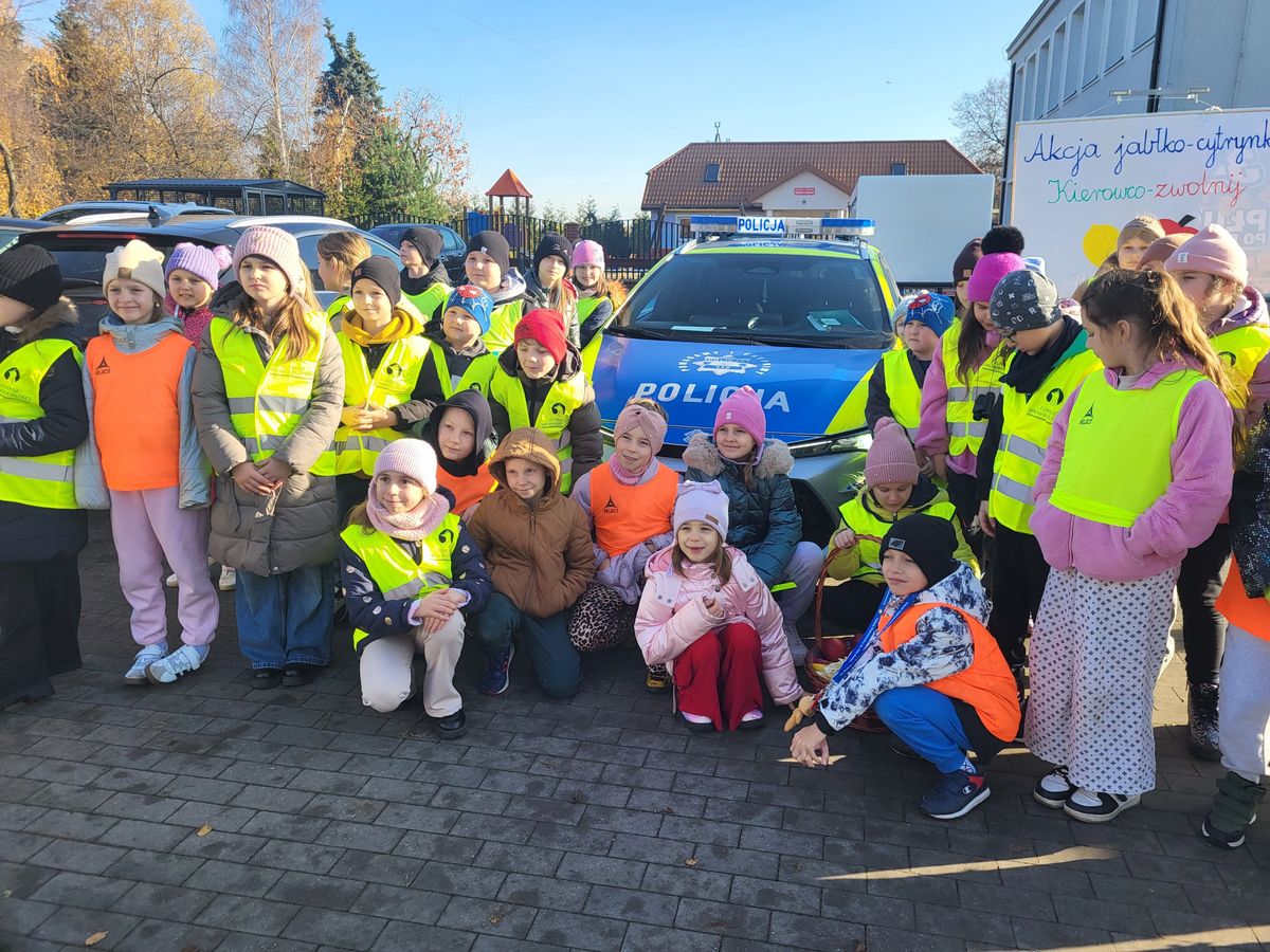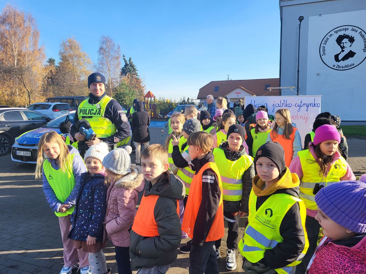 Policjanci z aleksandrowskiej „drogówki” wspólnie z uczniami ze Szkoły Podstawowej w Zbrachlinie przeprowadzili wczoraj (06.11.2025), akcję pod nazwą „Jabłko czy cytryna?”. Jej celem było zwrócenie uwagi na bezpieczeństwo w ruchu drogowym w okolicy szkoły.
