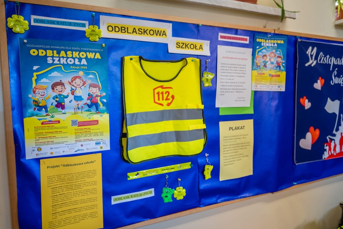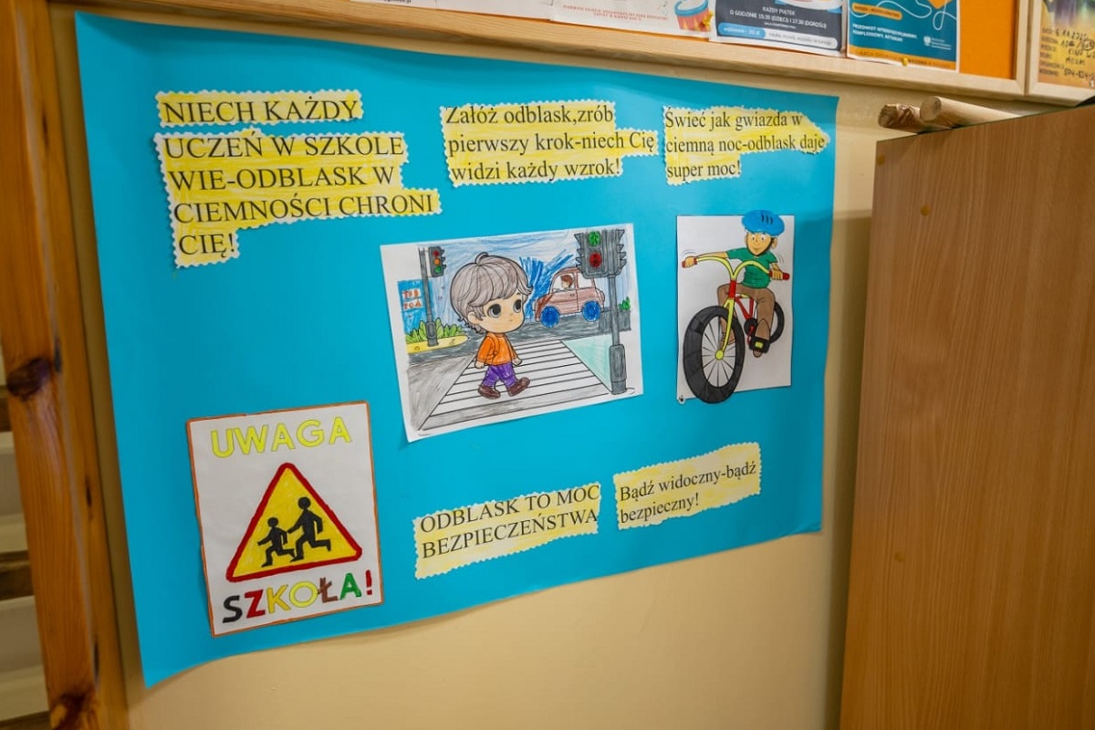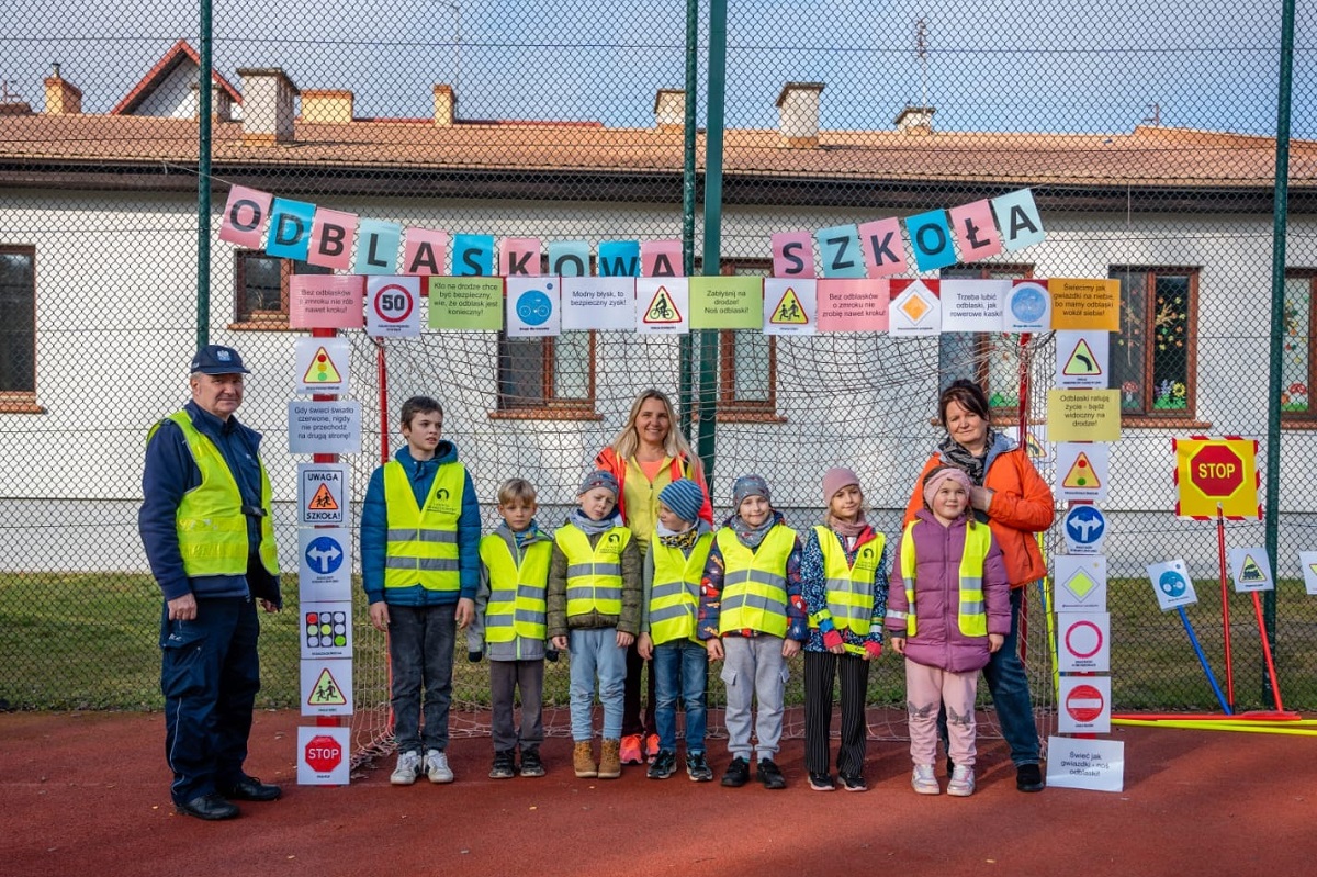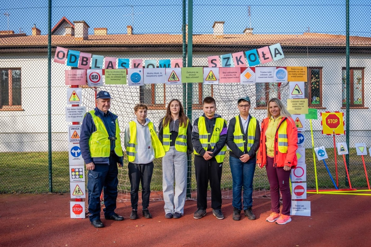 W ramach rywalizacji grono pedagogiczne wraz z uczniami przygotowało szereg wydarzeń, które odbywały się w ostatnim czasie. Wsparcia udzielił szkole dzielnicowy asp. szt. Andrzej Kawczyński z posterunku w Osiu, który został zaproszony do udziału w przedsięwzięciu. Policjant przypomniał dzieciom i nauczycielom, jak istotną rolę pełnią odblaski w codziennym poruszaniu się po drogach, zarówno w terenie zabudowanym, jak i poza nim. Podkreślił, że nawet mały element odblaskowy znacząco zwiększa widoczność pieszego, zwłaszcza w okresie jesienno- zimowym. Dzielnicowy podziękował Dyrekcji i uczniom za zaproszenie oraz za przygotowanie tak ciekawego i wartościowego przedsięwzięcia promującego bezpieczeństwo na drodze.