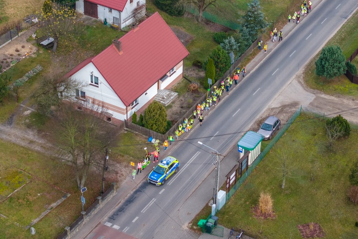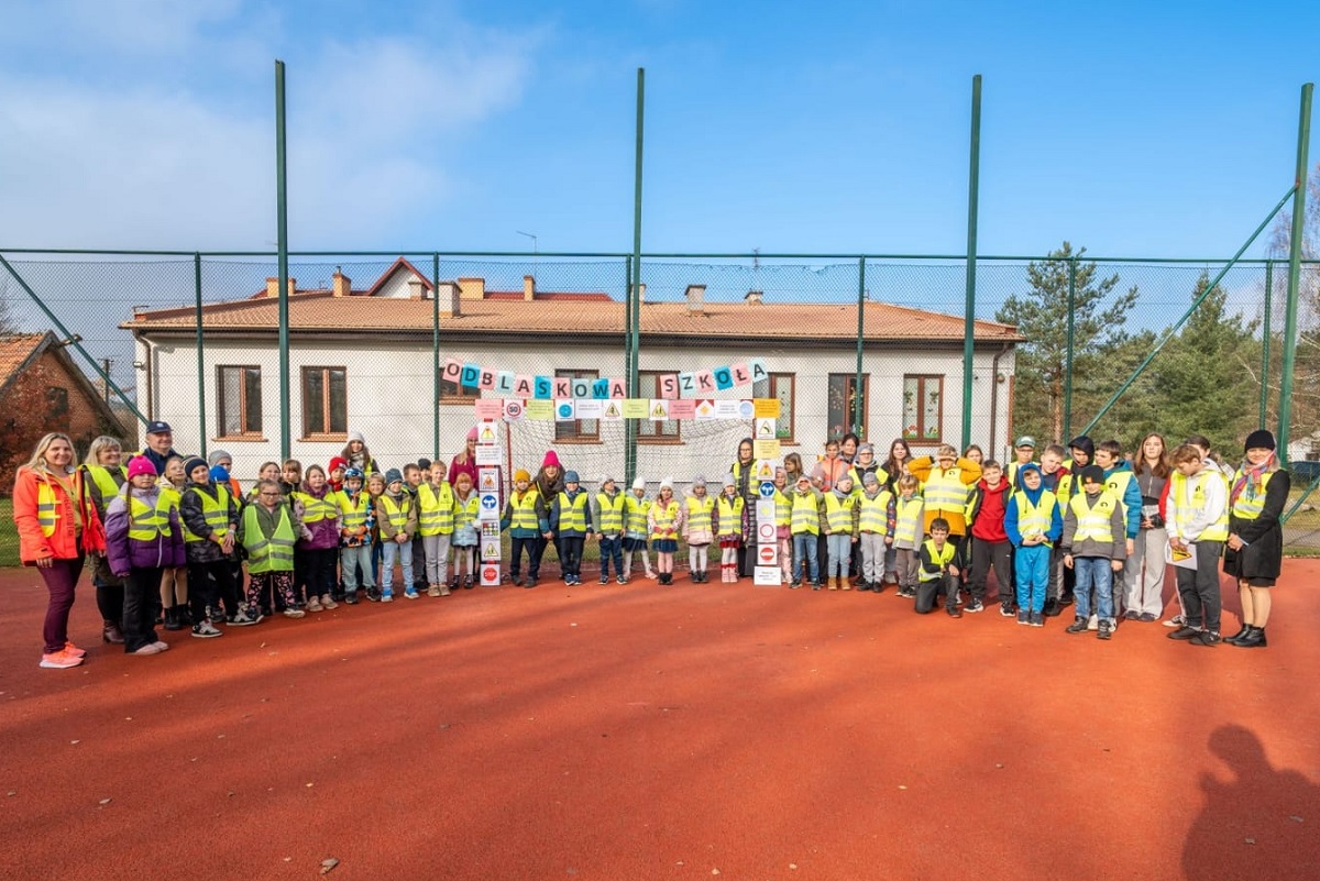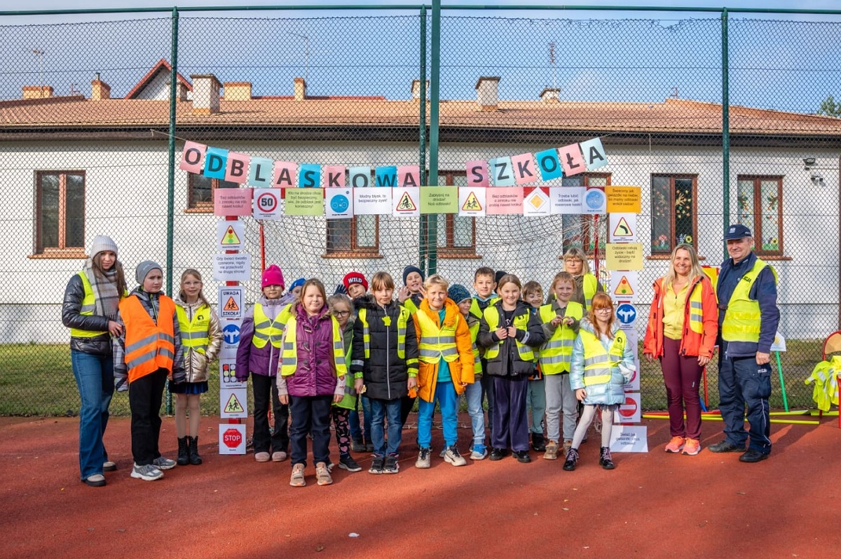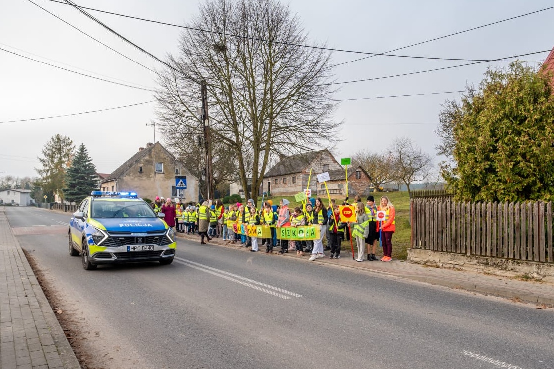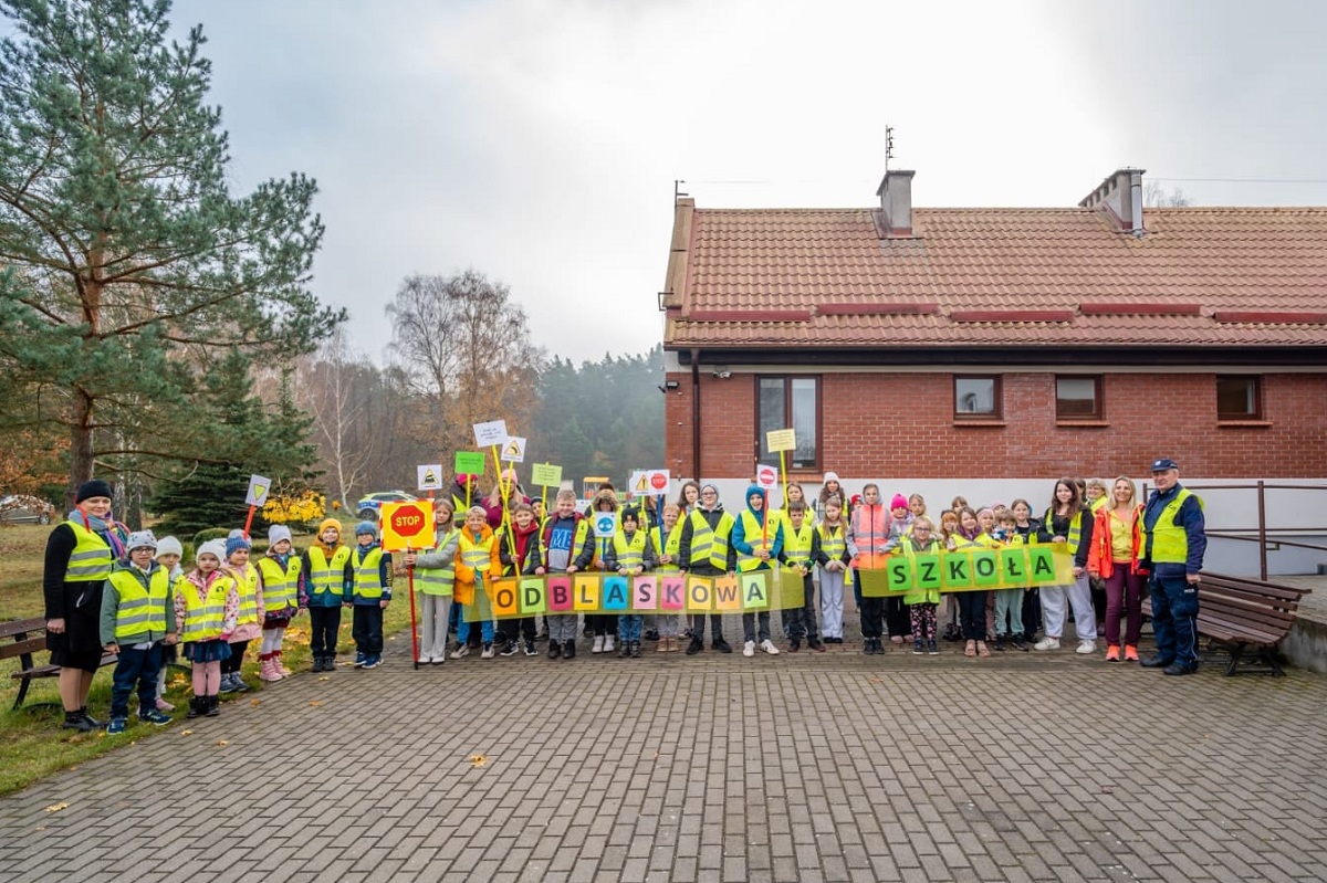 Upowszechniając noszenie odblasków, uczniowie ubrani w kamizelki odblaskowe przemaszerowali przez miejscowość. W ten sposób kształtowali nawyki noszenia odblasków i promowali zasady bezpieczeństwa w ruchu drogowym. Przebiegający w atmosferze współpracy marsz zabezpieczył zaprzyjaźniony dzielnicowy, a na zakończenie wszyscy zapozowali do pamiątkowego zdjęcia.