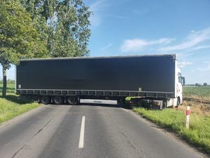 Pojazd przednią częścią utknął na poboczu i już sam nie wyjechał. Taki zachowaniem wstrzymał całkowicie ruch. Inne pojazdy ciężarowe musiały czekać na udrożnienie trasy.