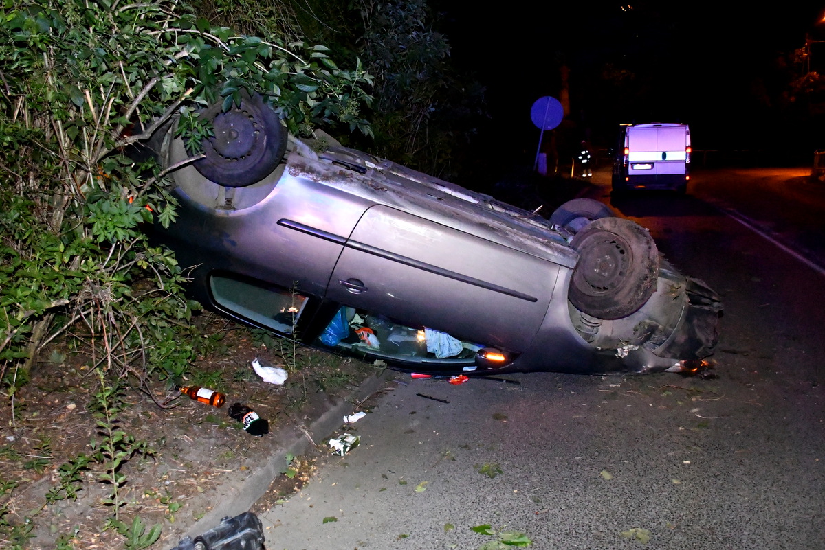 We wtorek (8.07.25), kilka minut po północy, dyżurny żnińskiej komendy otrzymał zgłoszenie o leżącym na dachu samochodzie osobowym, w Żninie na ulicy Klemensa Janickiego. Skierowani na miejsce policjanci „patrolówki” ustalili, że kierujący samochodem marki VW Golf nie dostosował prędkości do warunków na drodze, stracił panowanie nad autem, w wyniku czego uderzył w skarpę, a następnie dachował. Na szczęście, w wyniku tego niebezpiecznego zdarzenia nie odniósł żadnych obrażeń.