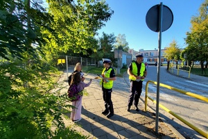Mundurowi zwracali uwagę zarówno na pieszych, jak i kierujących pojazdami. Rozmawiali z uczniami o konieczności zachowania ostrożności na drodze, przypominali o podstawowych przepisach oraz o tym, jak ważne jest noszenie elementów odblaskowych. Dzieci otrzymały odblaski, które zwiększają widoczność i bezpieczeństwo po zmroku.