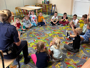Podczas pogadanki aspirant Monika Stolarska przypomniała podstawowe zasady bezpiecznego przechodzenia przez jezdnię, zwróciła uwagę na to jak zachowywać się w sytuacjach, gdy widoczność jest ograniczona.