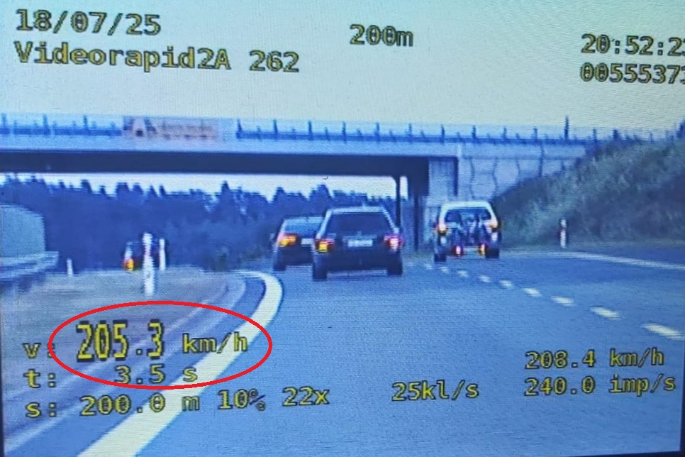 Kolejny brawurowy kierowca został zatrzymany przez policjantów ruchu drogowego w Gajewie, na autostradzie A1. Pędził mając na liczniku 205 km/h, przekraczając w ten sposób prędkość o 65 km/h. 34–letni kierowca mercedesa skończył z mandatem w wysokości 2000 złotych oraz 14 punktami karnymi.