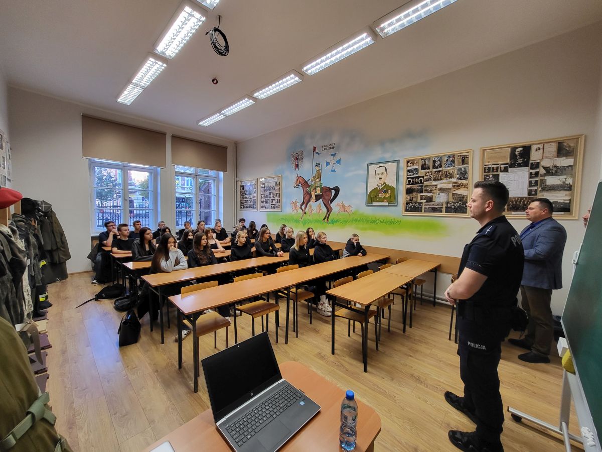 Wczoraj (24.09.2025) roku w III Liceum Ogólnokształcącym w Grudziądzu odbyły się pierwsze zajęcia z policjantem w ramach klasy policyjnej.