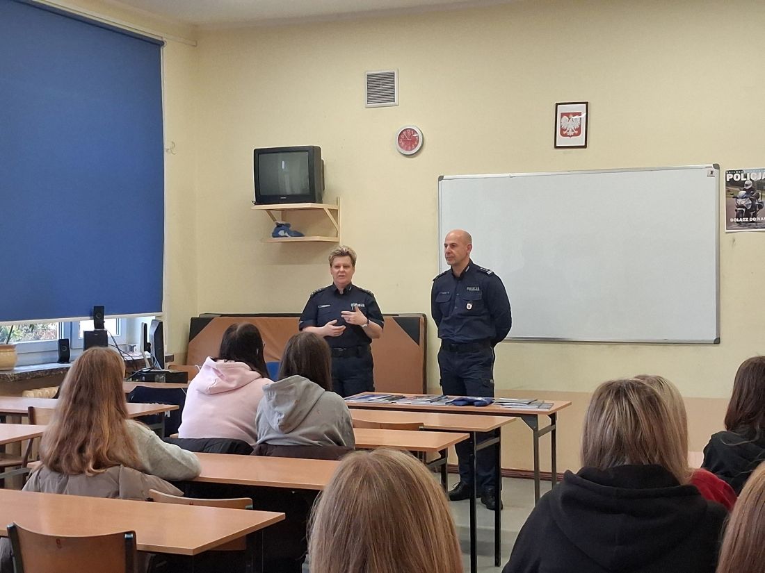 Wczoraj (27.10.25r.) w Zespole Szkół Elektroniczn0-Chemicznych w Inowrocławiu w klasie pierwszej mundurowej odbyły się zajęcia z udziałem policjantów.