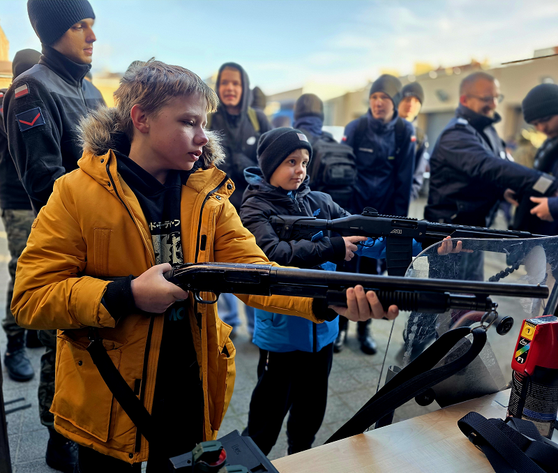 Dodatkową atrakcją była obecność funkcjonariuszy Oddziału Prewencji Policji w Bydgoszczy, którzy zaprezentowali wyposażenie wykorzystywane podczas działań pododdziałów zwartych oraz opowiedzieli o specyfice swojej służby.