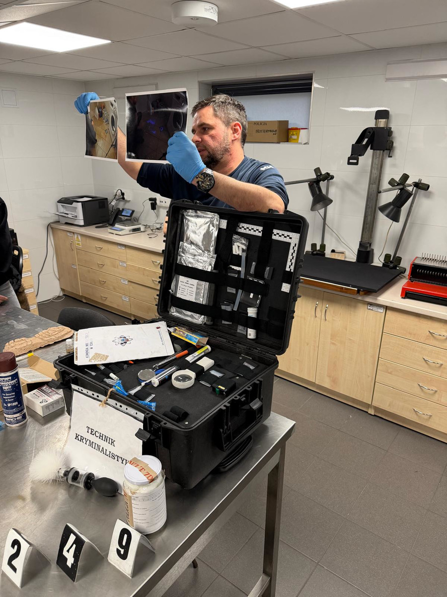 Największe zaciekawienie podczas spotkania wzbudził technik kryminalistyki. Policjant opowiedział o zabezpieczaniu śladów oraz zaprezentował narzędzia i metody stosowane m.in. podczas wykrywania i zabezpieczania odcisków palców czy obuwia. Słuchacze mieli możliwość zobaczyć, jak działa specjalistyczna „kabina” do wykonywania zdjęć osób podejrzanych, jak wykonuje się dokumentację fotograficzną oraz, jak wygląda analiza zabezpieczonych materiałów. Uczniowie dowiedzieli się również jakie znaczenie mają szczegóły, precyzja i jak ważna jest dokładność w wykonywaniu policyjnych zadań.