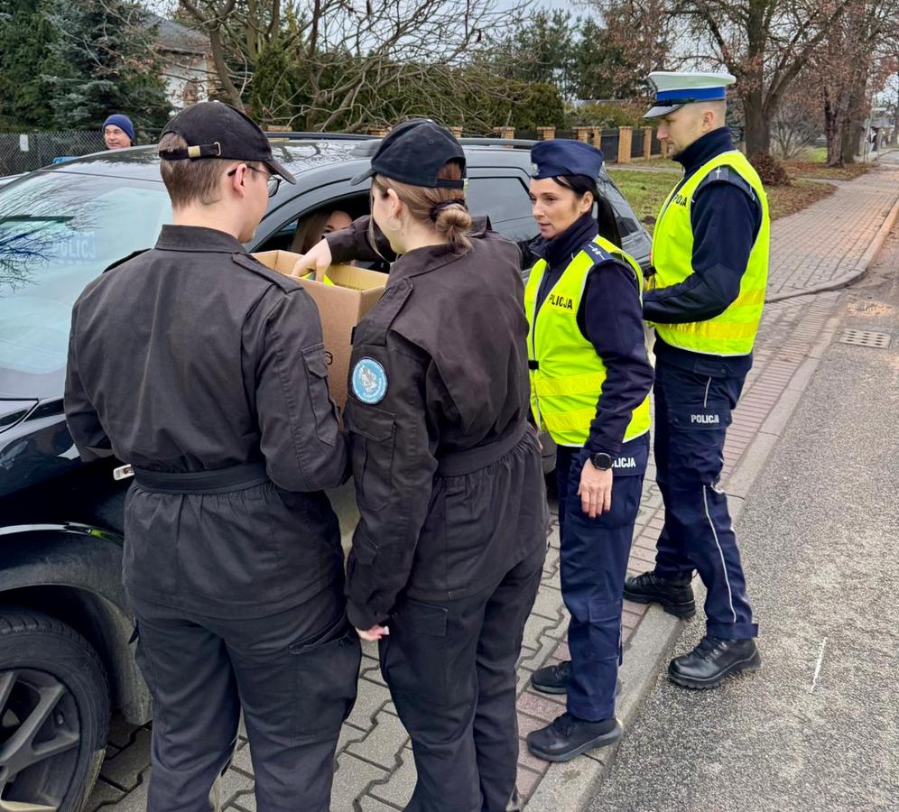 Dlatego dziś ( 12.12.25r.) od rana przy Zespole Szkół Mechanicznych w Radziejowie, policjanci wspólnie z uczniami klasy policyjnej rozdawali kamizelki odblaskowe. Przy okazji wręczania pieszym, rowerzystom oraz kierującym autami odblasków, mundurowi przypominali jak ważne jest ich noszenie, szczególnie poza terenem zabudowanym. Policjanci podkreślali, że nasze bezpieczeństwo w dużej mierze zależy od nas samych, i że niekiedy niewielki odblask może uratować życie lub zdrowie.