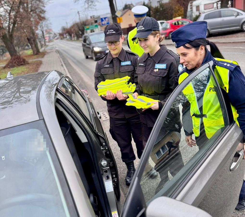 Bądź widoczny na drodze! Radziejowscy policjanci wspólnie z kadetami z Mechanika rozdawali odblaski