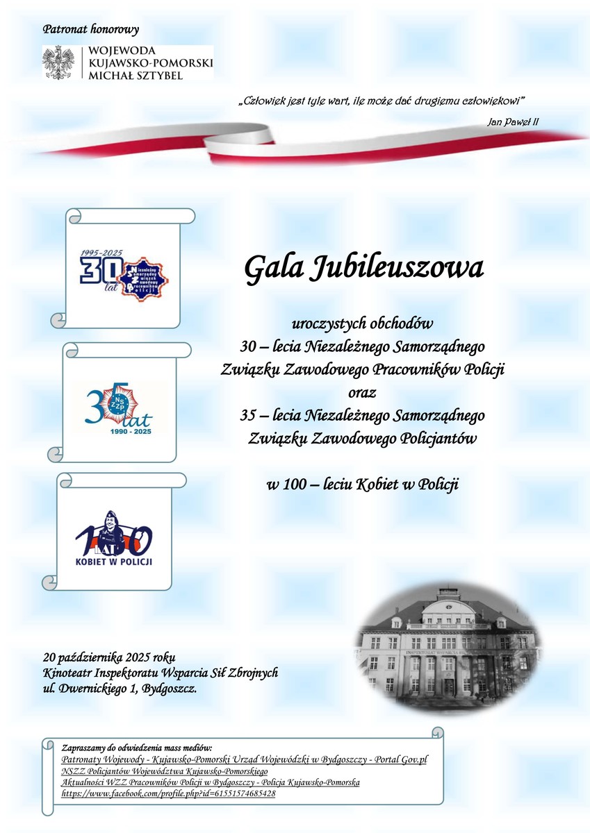 Gala Jubileuszowa uroczystych obchodów 30–lecia Niezależnego Samorządnego Związku Zawodowego Pracowników Policji oraz 35–lecia Niezależnego Samorządnego Związku Zawodowego Policjantów w 100–leciu Kobiet w Policji