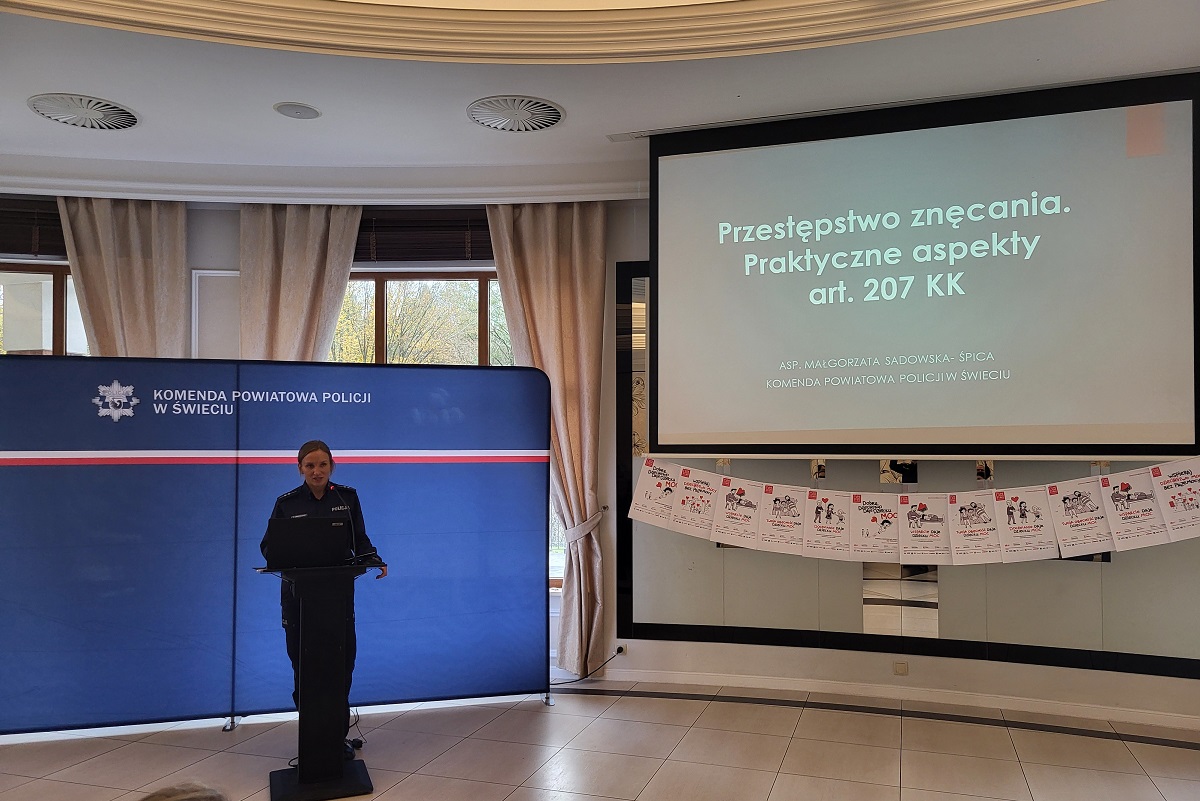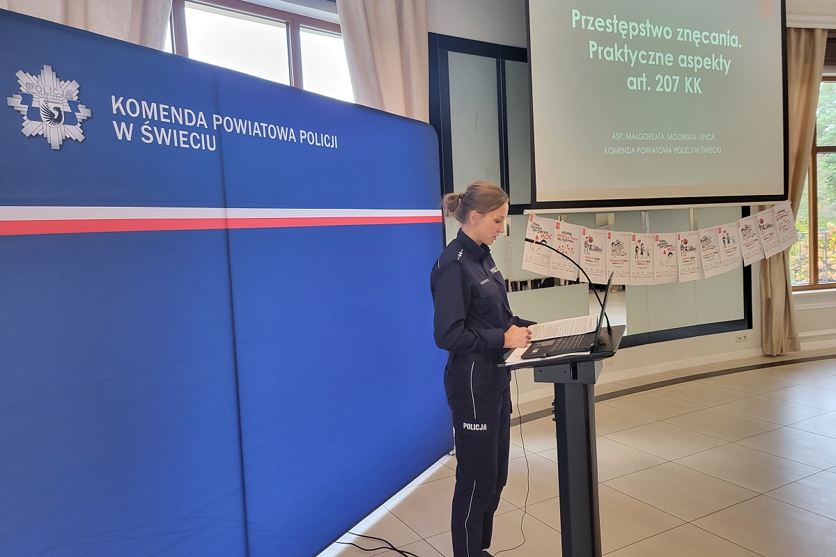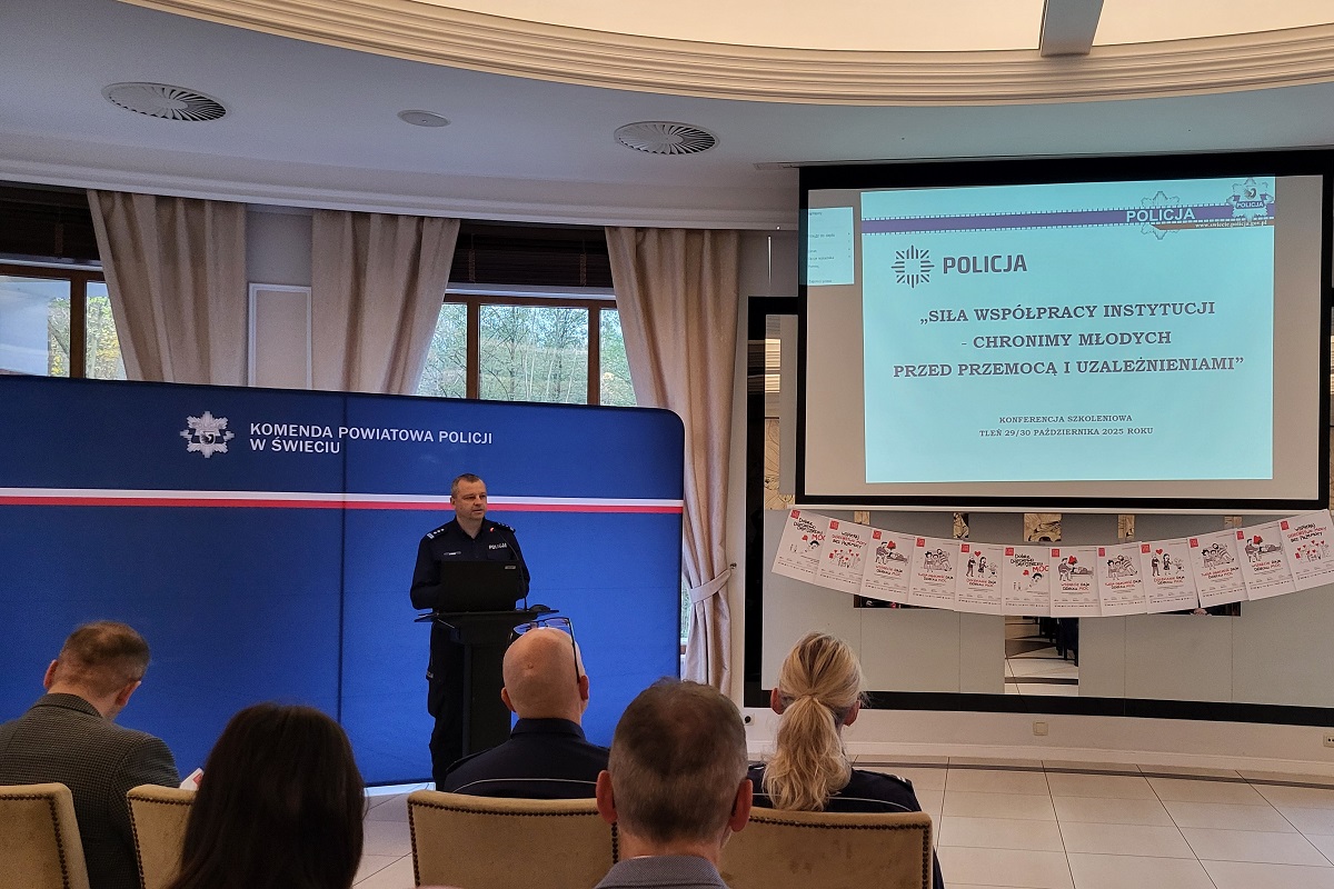 „Siła współpracy instytucji – chronimy młodych przed przemocą i uzależnieniami”. Pod takim tytułem policjanci z Komendy Powiatowej Policji w Świeciu wspólnie z Koordynatorem Gminnego Programu Profilaktyki i Rozwiązywania Problemów Alkoholowych w Świeciu, Ośrodkiem Pomocy Społecznej w Świeciu, Starostwem oraz Urzędem Miejskim w Świeciu zorganizowali tegoroczną konferencję. W spotkaniu udział wzięli przedstawiciele lokalnych samorządów, sądu, oświaty, opieki społecznej, straży miejskiej, straży pożarnej oraz kuratorzy zawodowi.