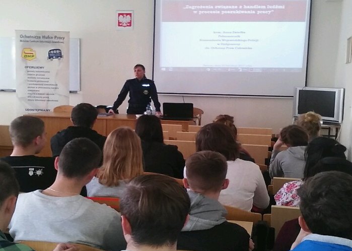 W dniu 24 kwietnia 2017 roku Pełnomocnik Komendanta Wojewódzkiego Policji w Bydgoszczy ds. Ochrony Praw Człowieka – kom. Anna Zwiefka, w ramach zorganizowanych Targów Edukacji i Pracy w Świeciu, przeprowadziła zajęcia na temat zagrożeń związanych handlem ludźmi w procesie poszukiwania pracy.