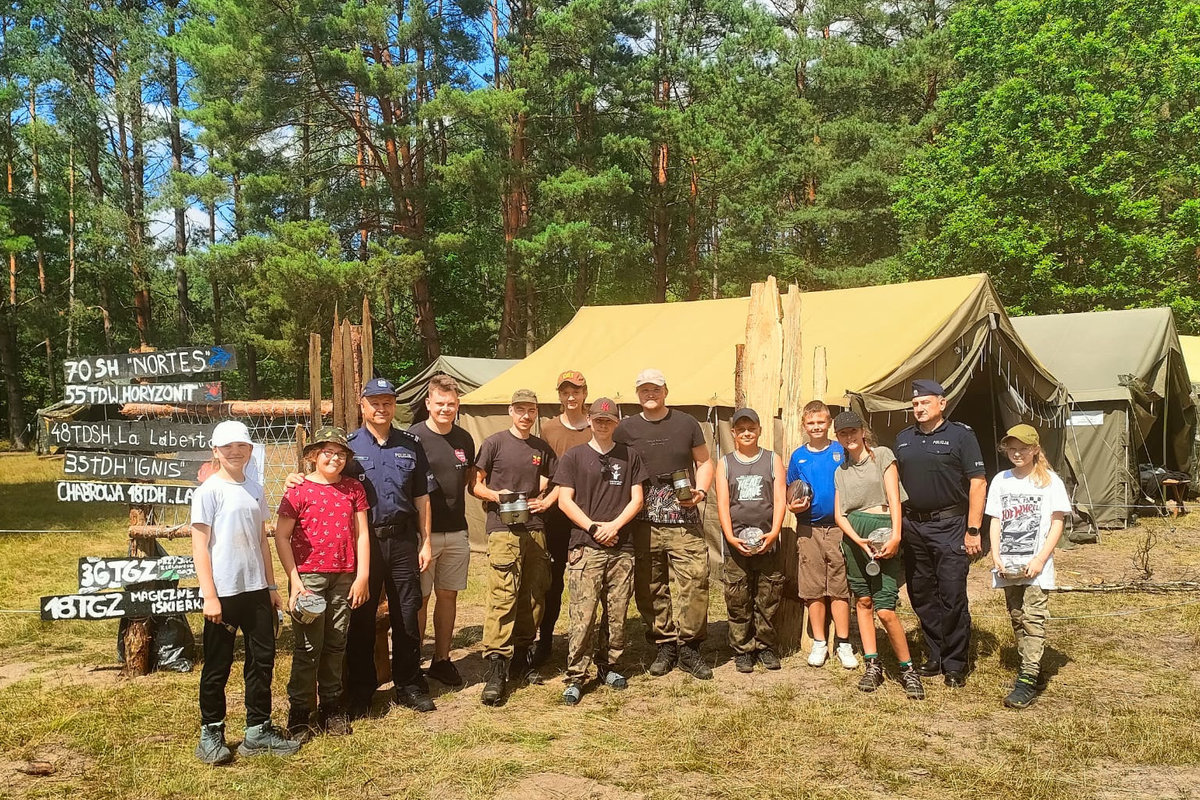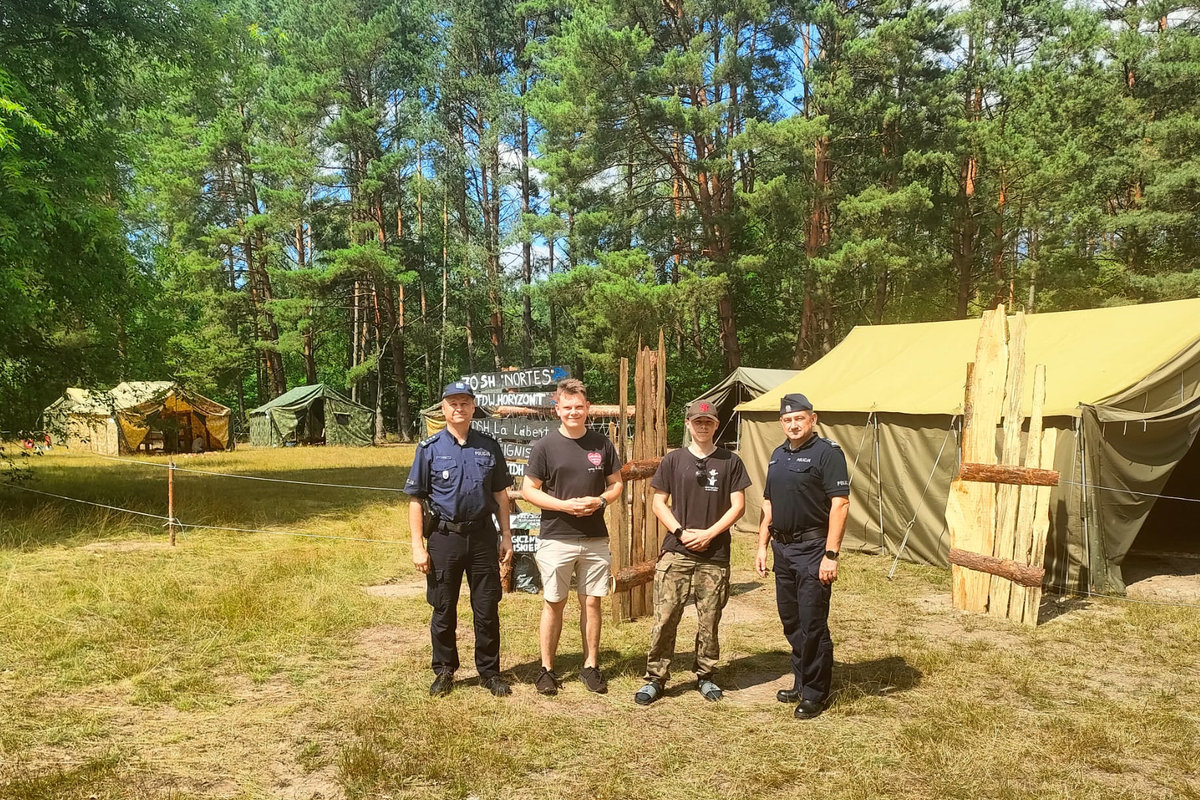 W minioną niedzielę (20.07.25) Zastępca Komendanta Wojewódzkiego Policji w Bydgoszczy inspektor Jacek Witas, wspólnie z Komendantem Powiatowym Policji w Brodnicy inspektorem Tomaszem Skoneczką odwiedzili uczestników rozpoczynającego się w miejscowości Ryte Błota (powiat brodnicki) obozu harcerskiego. W trosce o bezpieczeństwo dzieci i młodzieży Szefowie sprawdzili w jakich warunkach będą wypoczywać i przybliżyli zagadnienia oraz zasady, do których winni się stosować podczas wakacji.