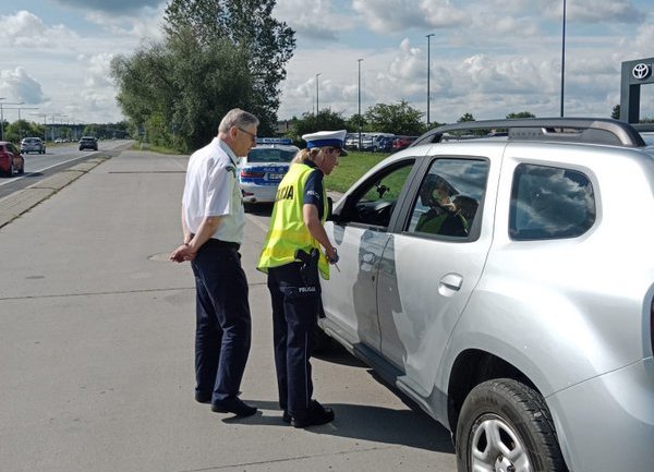 Z okazji imienin patrona kierowców św. Krzysztofa, przypadających dzisiaj (25.07.25), na al. Jana Pawła II w Bydgoszczy policjanci z Wydziału Ruchu Drogowego Komendy Wojewódzkiej Policji w Bydgoszczy prowadzili akcję skierowaną do zmotoryzowanych użytkowników dróg. W działaniach funkcjonariuszom towarzyszył, jak co roku, Kapelan kujawsko-pomorskiej policji Ksiądz Infułat Stanisław Kotowski.