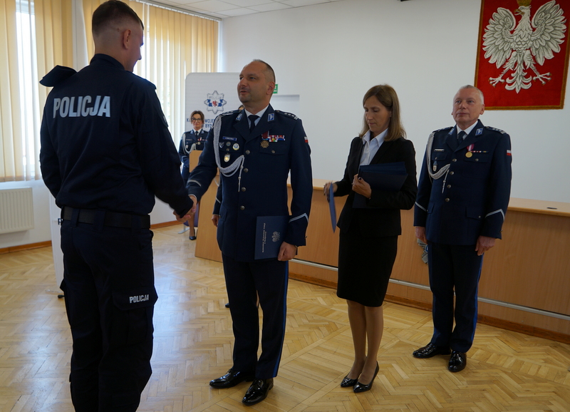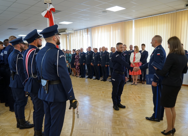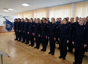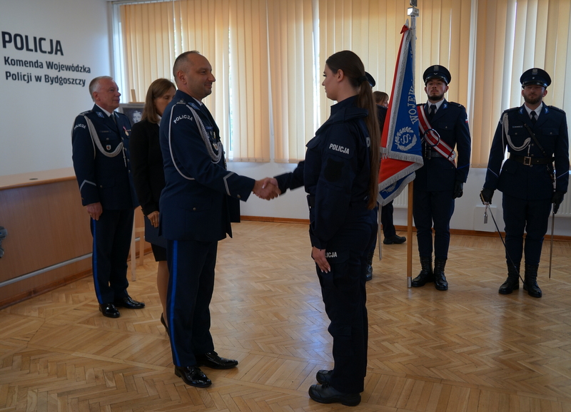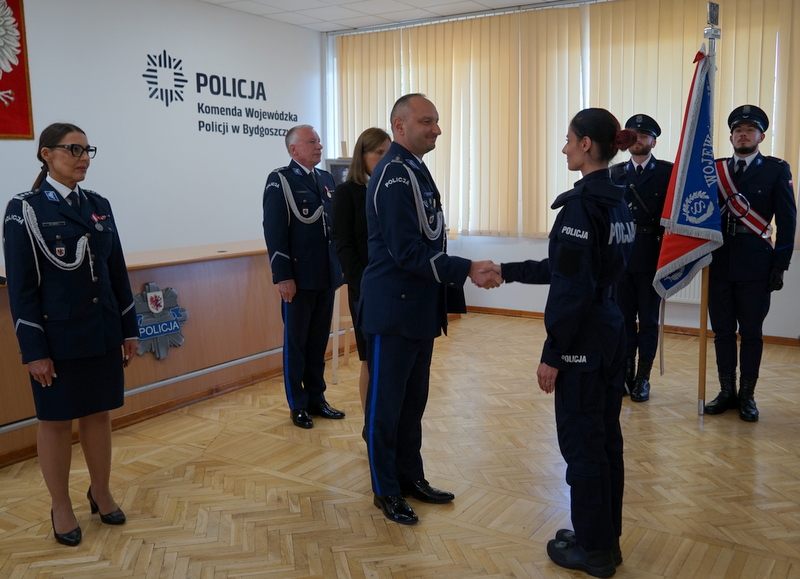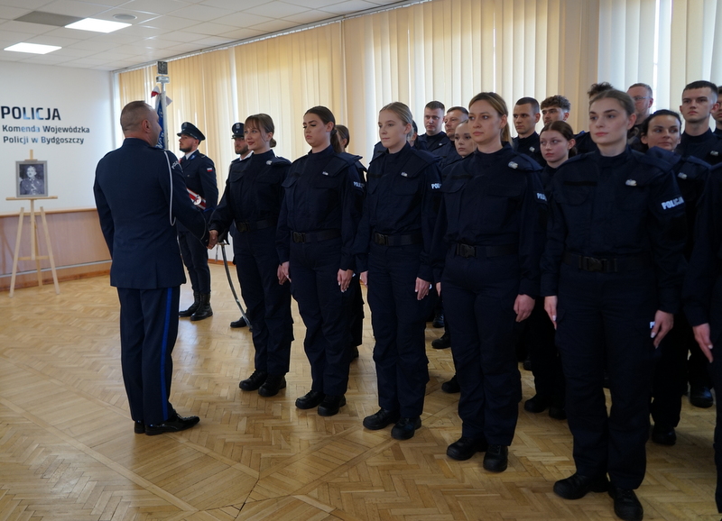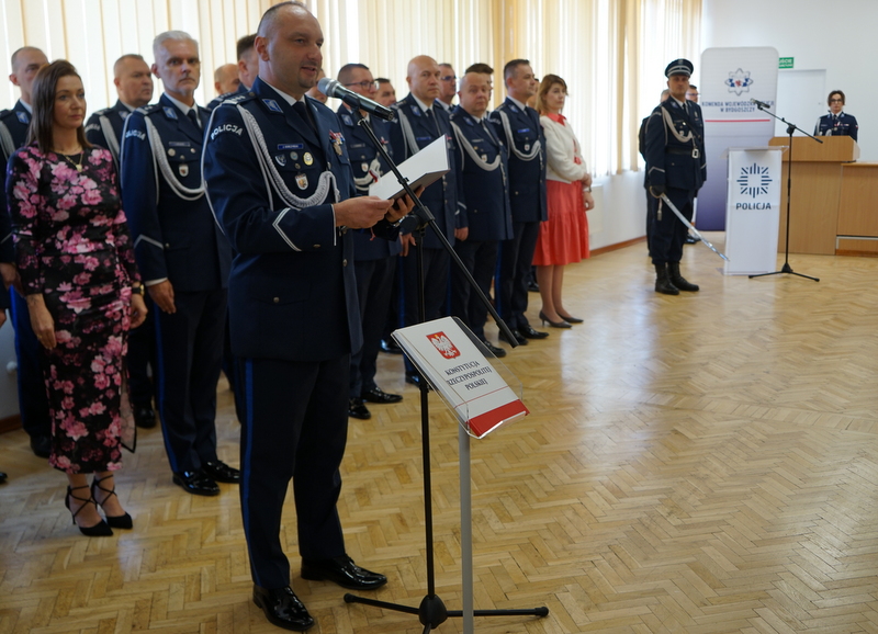 Słowa roty ślubowania wybrzmiały na sali konferencyjnej Komendy Wojewódzkiej Policji w Bydgoszczy. Inspektor Jakub Gorczyński zwrócił się do funkcjonariuszy następującymi słowami: