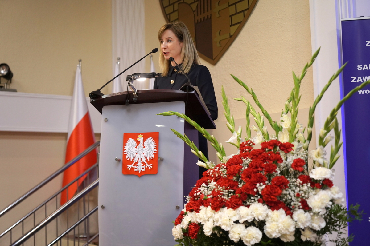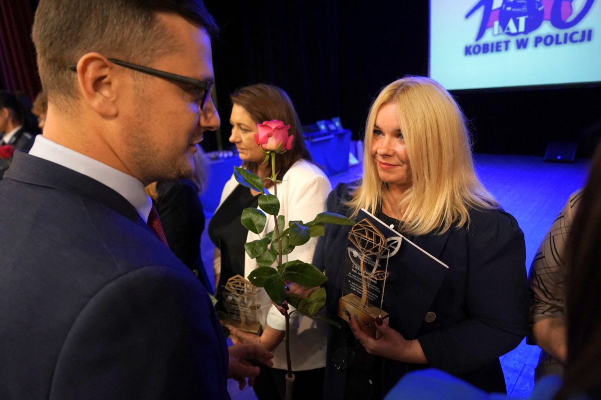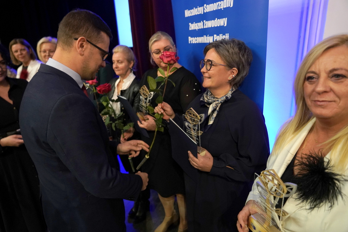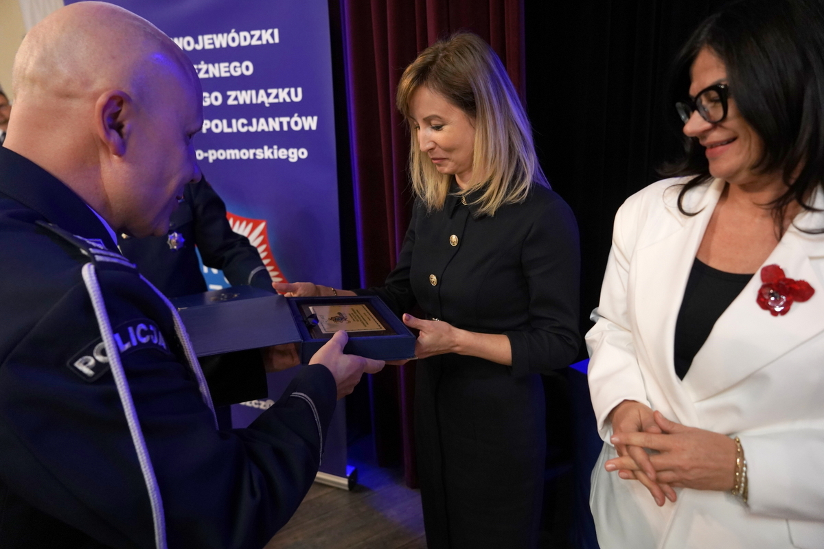 Po przemówieniach gospodarzy uroczystości Pan Michał Sztybel Wojewoda Kujawsko–Pomorski wręczył pracownicom Policji oraz funkcjonariuszkom pamiątkowe listy gratulacyjne oraz statuetki z okazji rocznicy 100-lecia Kobiet w Policji. W słowach skierowanych do zebranych gości Pan Wojewoda podkreślił rolę kobiet w uznaniu za codzienny trud pracy i służby, zaangażowanie i determinację przekładające się na rozwój nie tylko formacji i ruchu związkowego, ale przede wszystkim dbałości o bezpieczeństwo, a także porządek publiczny w województwie kujawsko-pomorskim.