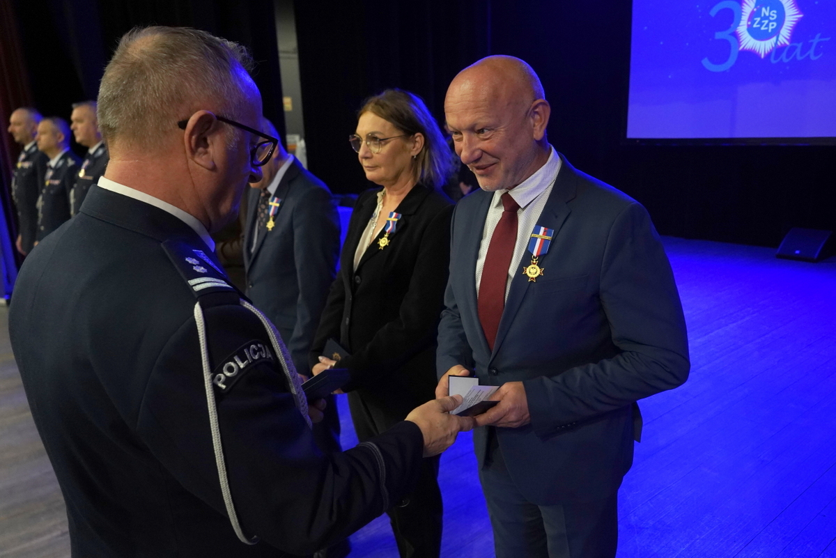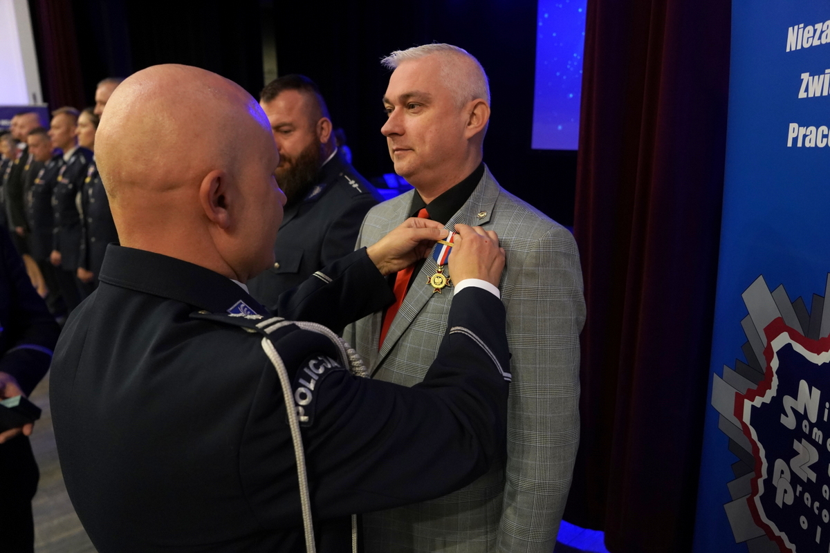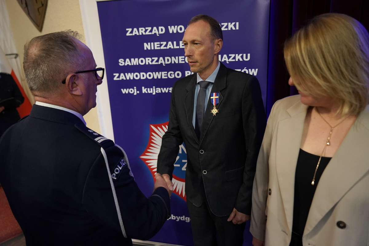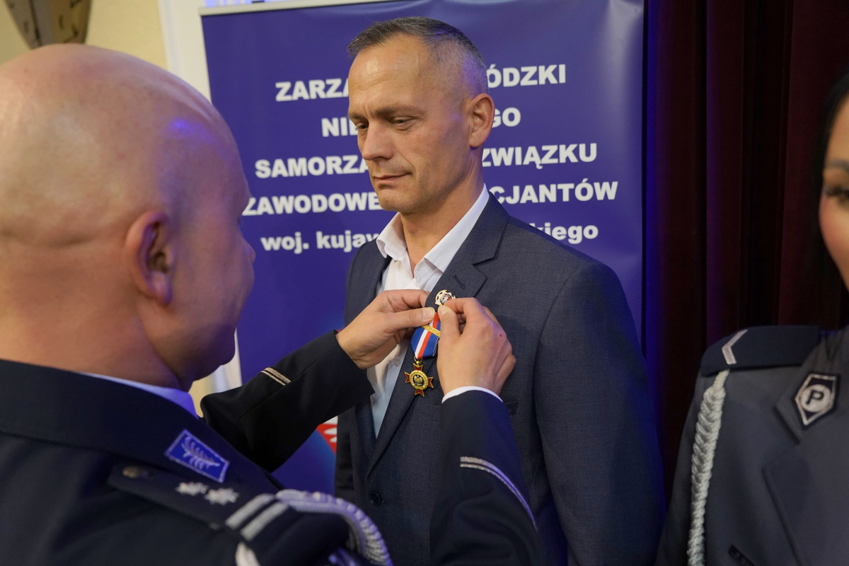 Następnie osoby zasłużone dla obu organizacji związkowych zostały uhonorowane okolicznościowymi odznaczeniami, medalami oraz podziękowaniami, które wręczyli: Wiceprzewodniczący Zarządu Głównego NSZZ Policjantów mł. insp. Piotr Kujawa w asyście Przewodniczącego Zarządu Wojewódzkiego NSZZ Policjantów woj. pomorskiego mł. insp. Józefa Partyki oraz Wiceprzewodnicząca Krajowej Komisji Wykonawczej NSZZ Pracowników Policji Pani Grażyna Tronkowska w asyście Przewodniczącej Wojewódzkiego Zarządu Zakładowego NSZZ Pracowników Policji w Bydgoszczy Pani Sandry Szymaniak.