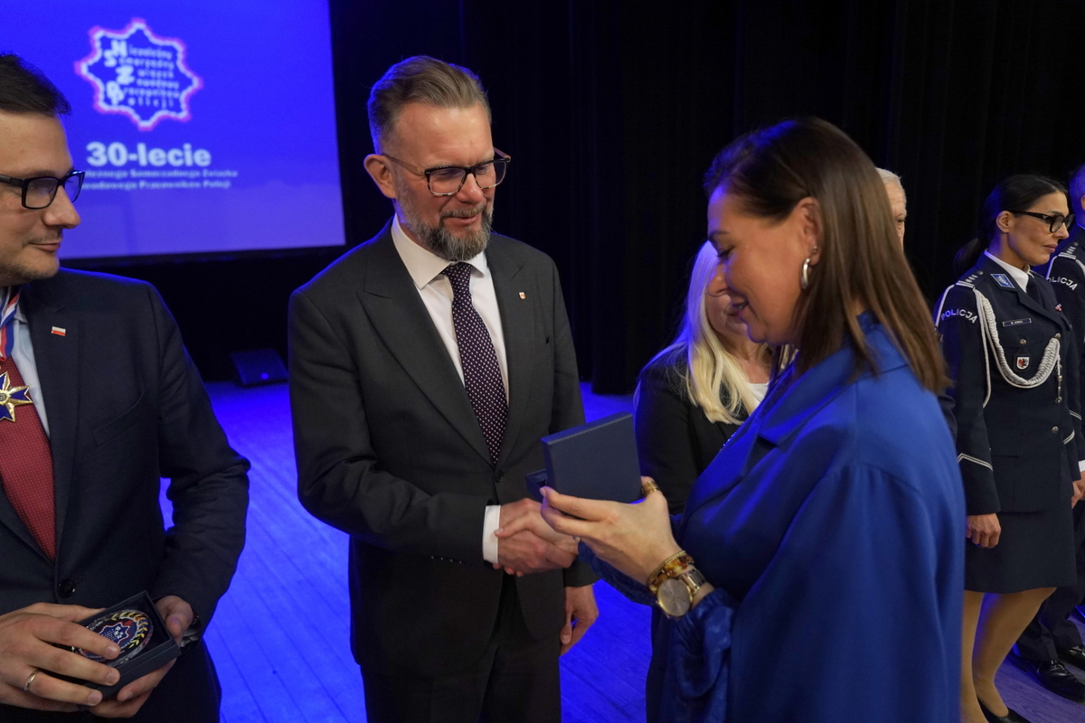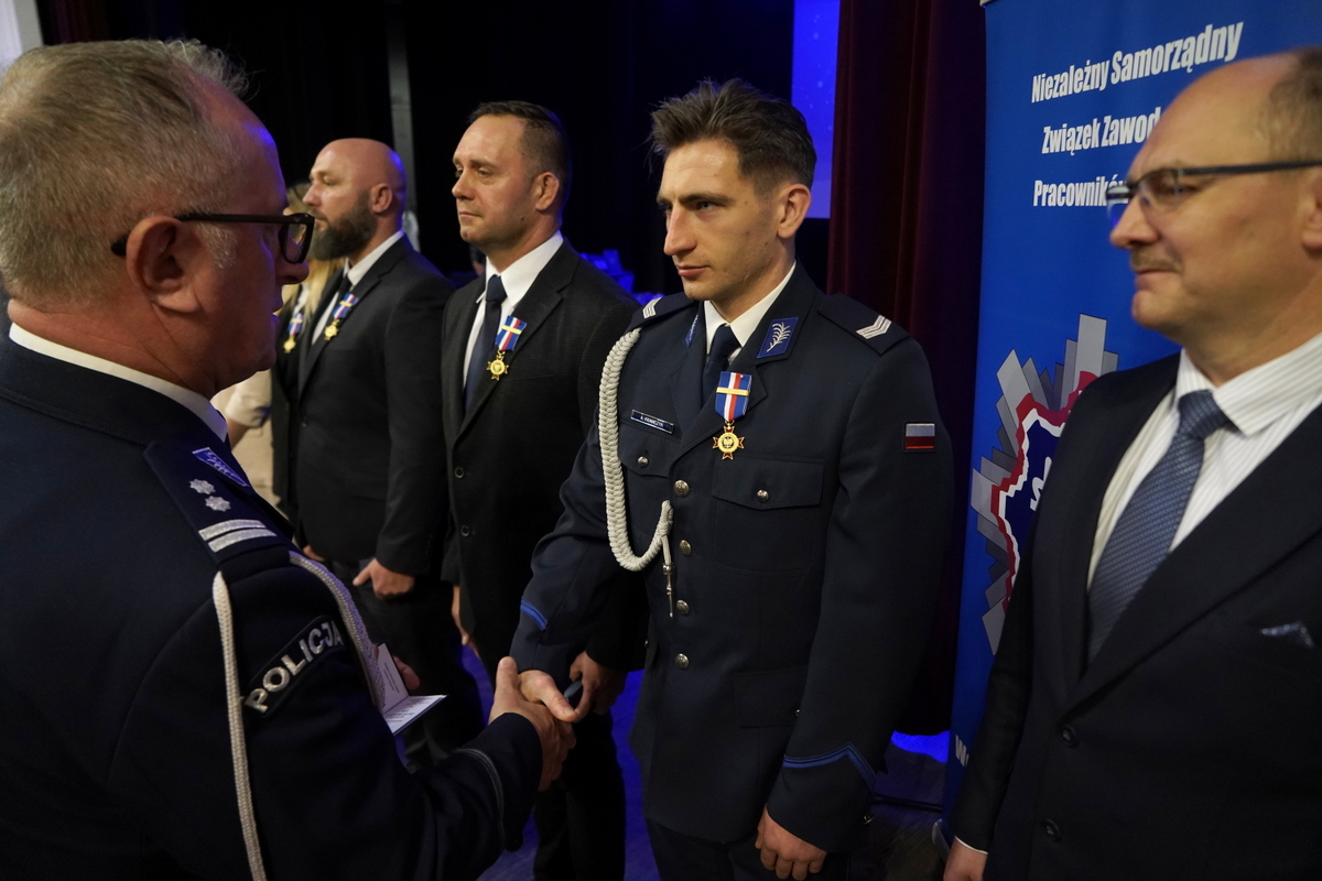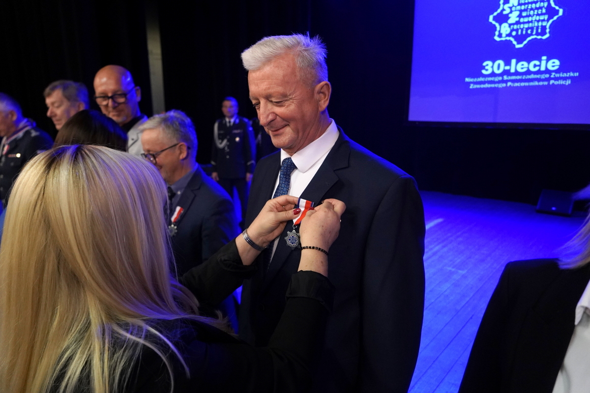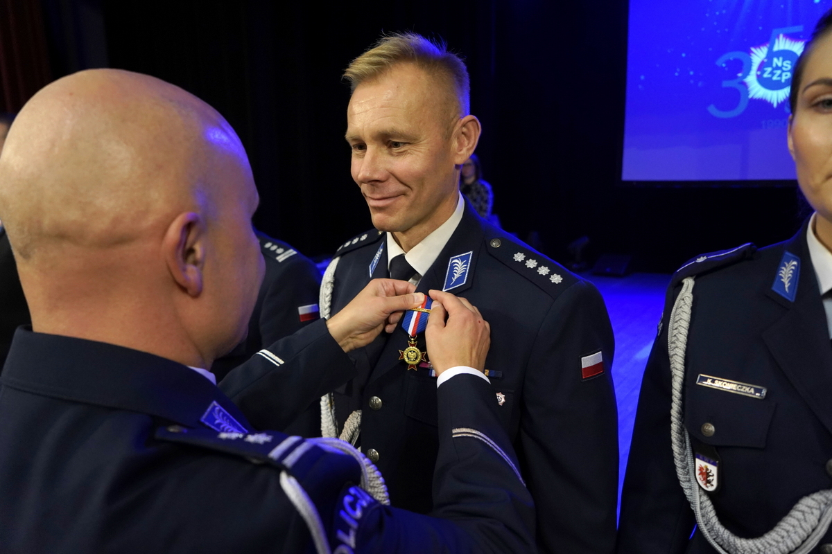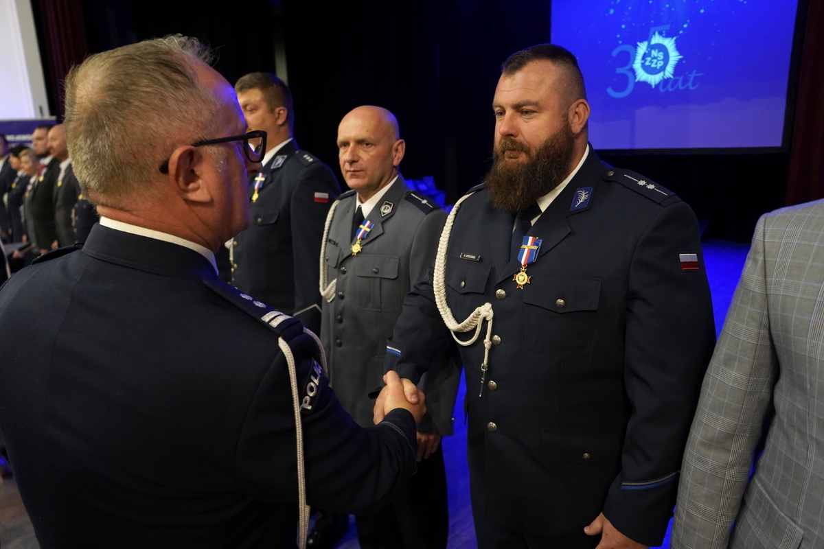 Następnie osoby zasłużone dla obu organizacji związkowych zostały uhonorowane okolicznościowymi odznaczeniami, medalami oraz podziękowaniami, które wręczyli: Wiceprzewodniczący Zarządu Głównego NSZZ Policjantów mł. insp. Piotr Kujawa w asyście Przewodniczącego Zarządu Wojewódzkiego NSZZ Policjantów woj. pomorskiego mł. insp. Józefa Partyki oraz Wiceprzewodnicząca Krajowej Komisji Wykonawczej NSZZ Pracowników Policji Pani Grażyna Tronkowska w asyście Przewodniczącej Wojewódzkiego Zarządu Zakładowego NSZZ Pracowników Policji w Bydgoszczy Pani Sandry Szymaniak.