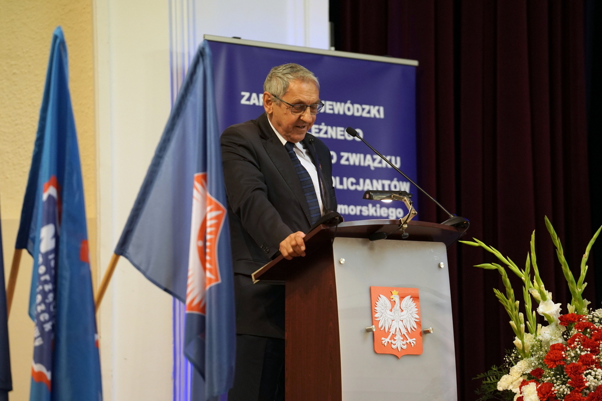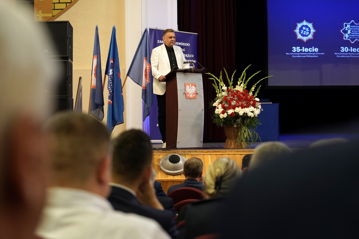 - mł. insp. Piotr Kujawa Przewodniczący ZW NSZZ Policjantów woj. kujawsko-pomorskiego, który przedstawił krótki rys historyczny związku na przestrzeni ostatnich 35 lat, podkreślając obecne motto związku „Zaangażowanie - Wrażliwość - Doświadczenie”. Przypomniał, ile udało się osiągnąć dla środowiska policyjnego poprzez prowadzone działania w duchu kompromisu i poszanowania wszystkich stron dialogu. Wspomniał o budowaniu szacunku dla policjantek i policjantów wśród społeczeństwa za codzienne narażanie życia w służbie dla obywateli oraz poprosił zebranych o uczczenie minutą ciszy pamięć tych koleżanek i kolegów działaczy, którzy odeszli na wieczną służbę. Na końcu wystąpienia podziękował wszystkim tym, którzy wspólnie działają i współpracują na rzecz policjantów oraz ich rodzin.