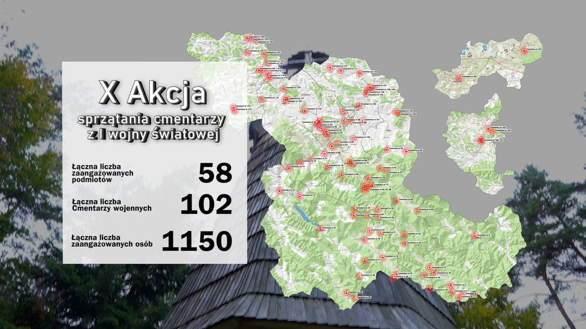 W dniach 9-11 października 2025 r. miała miejsce jubileuszowa X Akcja sprzątania cmentarzy z I wojny światowej w zachodniej Galicji. Z biegiem lat efekt prac rozpoczętych przez Koło PTTK nr 8 – Klubu Górskiego „Orły” przy Komendzie Stołecznej Policji, a kontynuowanych przez wolontariuszy, szkoły, samorządy, strażaków OSP, harcerzy, opiekunów cmentarzy i partnerów zagranicznych, staje się coraz bardziej widoczny. Cmentarze, niegdyś ukryte wśród zarośli, wyłoniły się z krajobrazu, są odnawiane i stały się dostępne dla odwiedzających, a dzięki systematycznej opiece miejsca te stają się wizytówkami regionu.