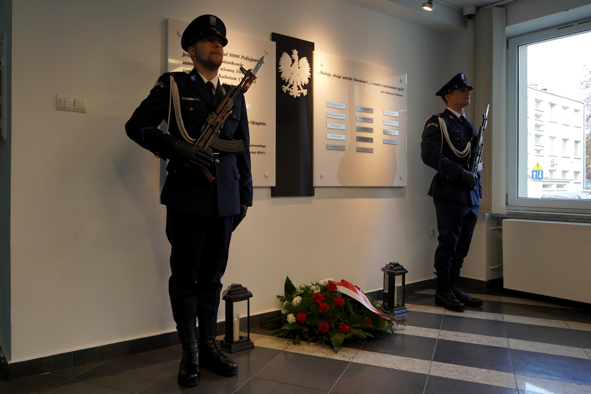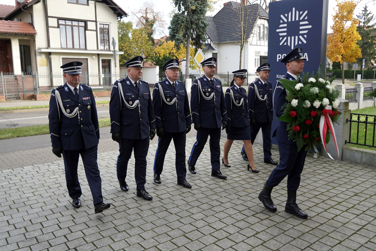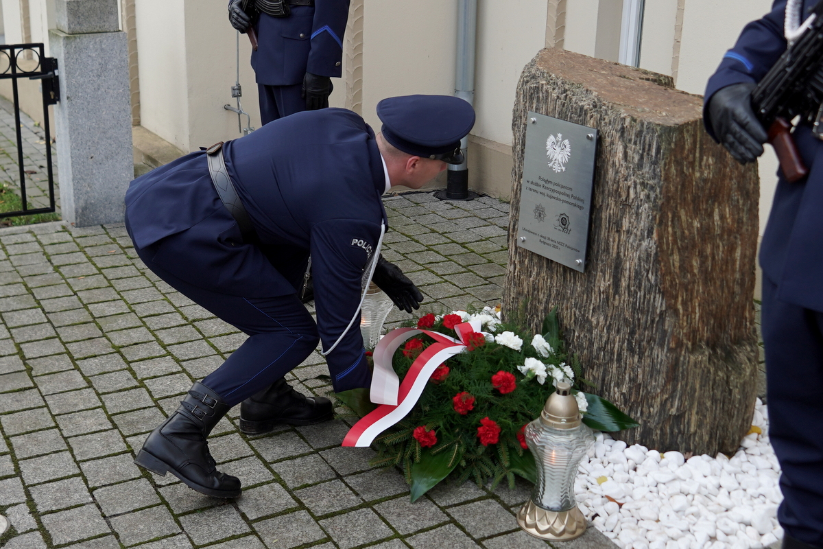 Komendant Wojewódzki Policji w Bydgoszczy inspektor Jakub Gorczyński wraz z Zastępcami: inspektorem Marcinem Woźniakiem, inspektor Małgorzatą Jorką, inspektorem Jackiem Witasem i Komendantem Miejskim Policji w Bydgoszczy młodszym inspektorem Mariuszem Gaikiem oraz Wicerzewodniczącym Zarządu Wojewódzkiego Niezależnego Samorządnego Związku Zawodowego Policjantów podinspektorem Jerzym Kostrzewskim, złożyli kwiaty pod Kamieniem Pamięci ufundowanym ku czci Poległych policjantów w służbie Rzeczypospolitej Polskiej z terenu województwa kujawsko-pomorskiego.