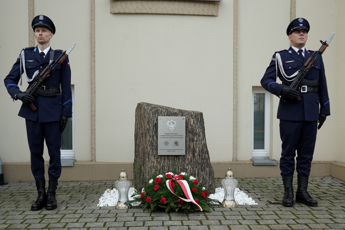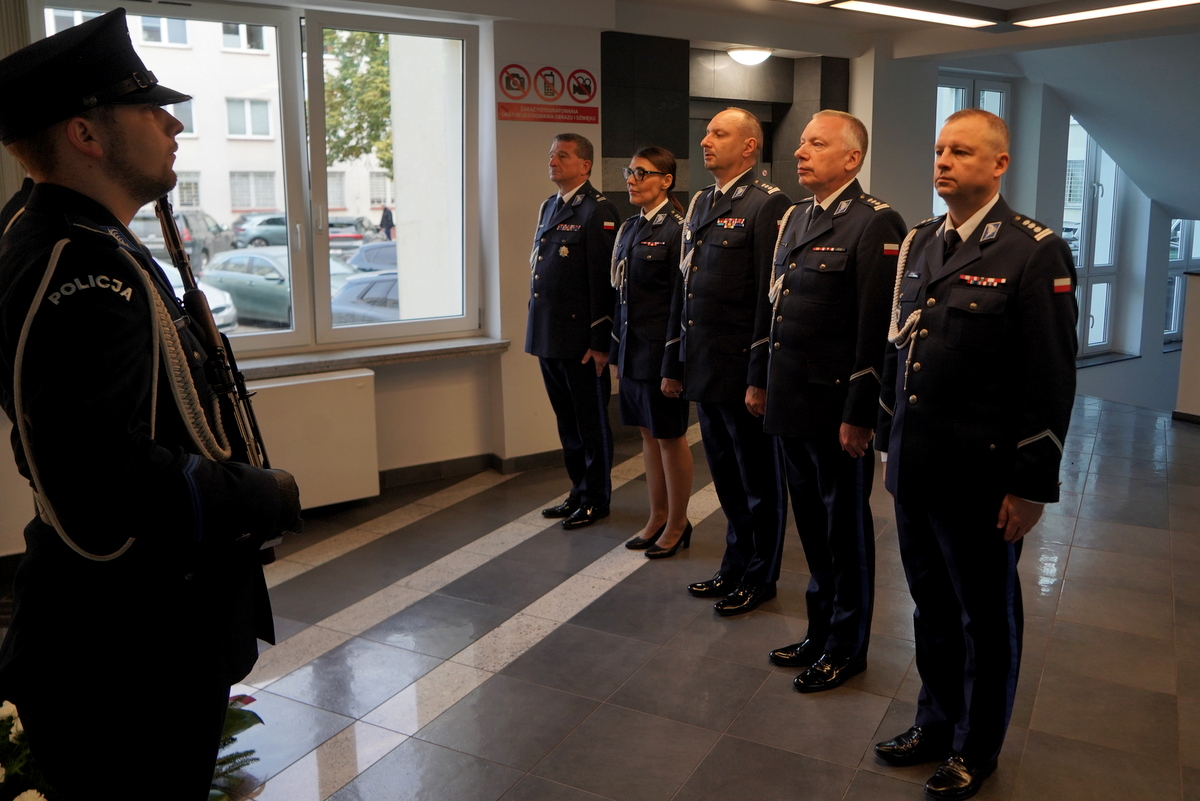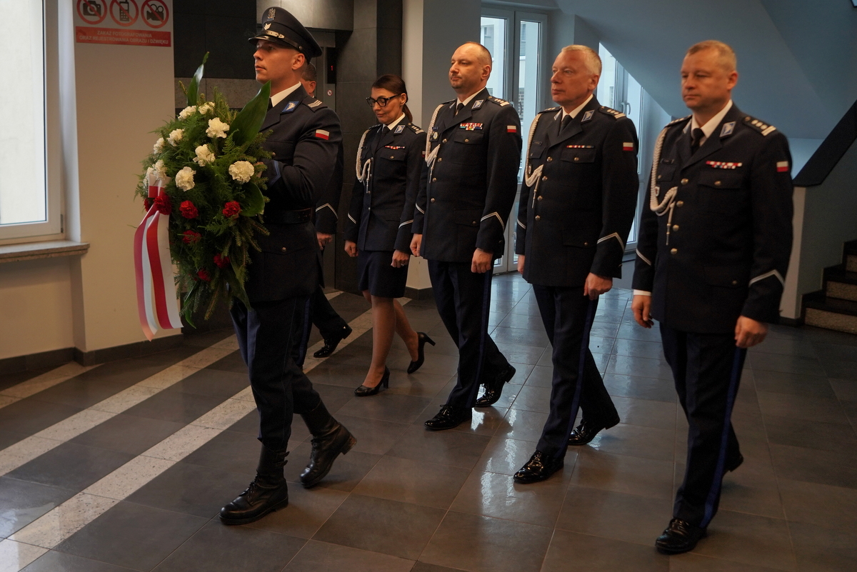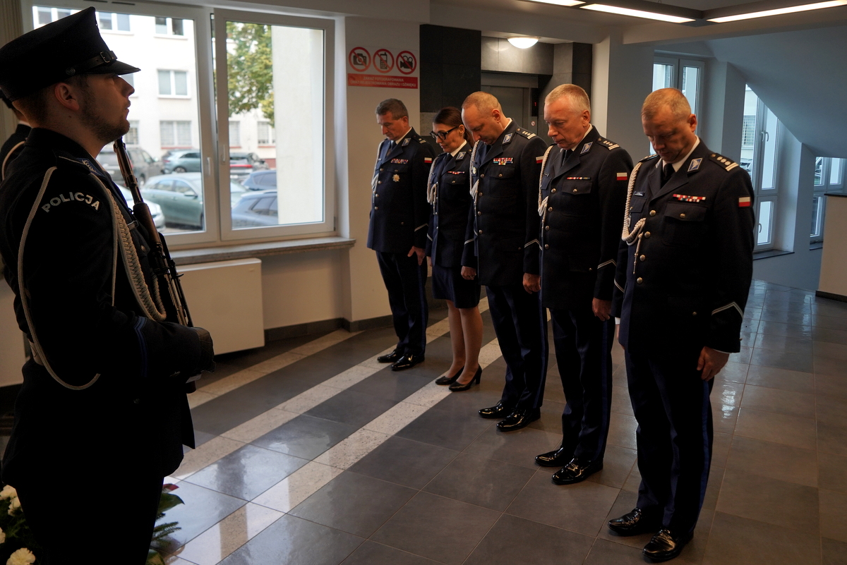 Komendant Wojewódzki Policji w Bydgoszczy inspektor Jakub Gorczyński wraz z Zastępcami: inspektorem Marcinem Woźniakiem, inspektor Małgorzatą Jorką, inspektorem Jackiem Witasem i Komendantem Miejskim Policji w Bydgoszczy młodszym inspektorem Mariuszem Gaikiem oraz Wicerzewodniczącym Zarządu Wojewódzkiego Niezależnego Samorządnego Związku Zawodowego Policjantów podinspektorem Jerzym Kostrzewskim, złożyli kwiaty pod Kamieniem Pamięci ufundowanym ku czci Poległych policjantów w służbie Rzeczypospolitej Polskiej z terenu województwa kujawsko-pomorskiego.
