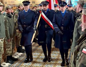 Kujawsko-pomorską Policję, na uroczystych obchodach 107. Rocznicy odzyskania przez Polskę niepodległości w Bydgoszczy, reprezentowali Pierwszy Zastępca Komendanta Wojewódzkiego Policji w Bydgoszczy inspektor Marcin Woźniak oraz Pierwszy Zastępca Komendanta Miejskiego Policji w Bydgoszczy podinspektor Marcin Wyłuba.