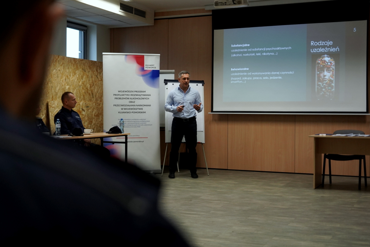 Policjanci z garnizonu kujawsko-pomorskiego, zajmujący się na co dzień profilaktyką, poszerzali swoją wiedzę z zakresu pomocy i wsparcia dla osób uzależnionych i ich rodzin. Szkolenie zostało zorganizowane funkcjonariuszy Wydziału Prewencji Komendy Wojewódzkiej Policji w Bydgoszczy oraz Urząd Marszałkowski Województwa Kujawsko-Pomorskiego w Toruniu.