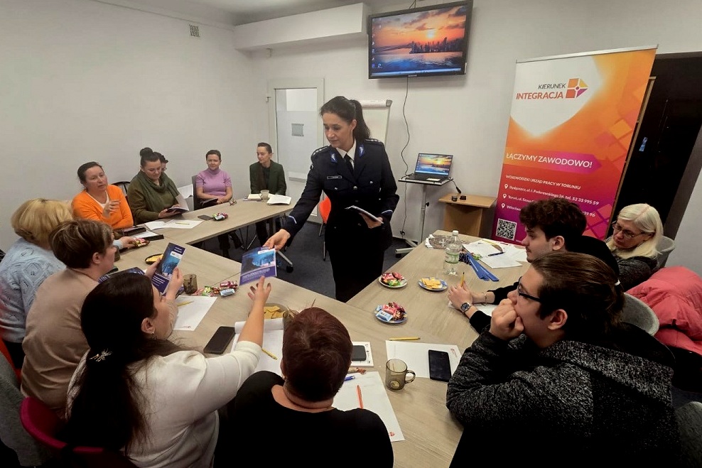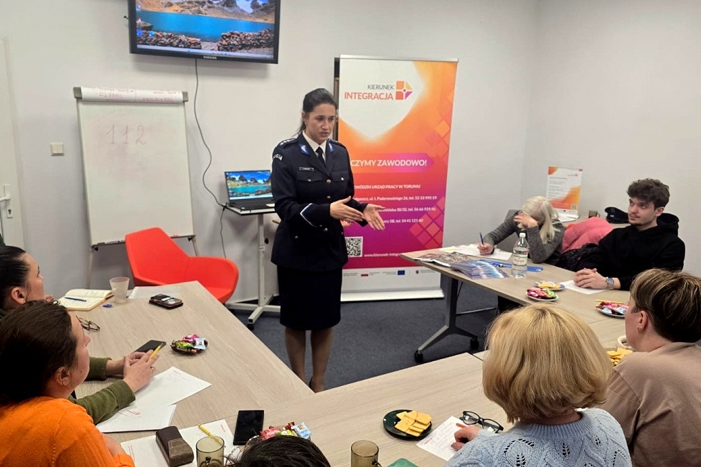 Wczoraj (26.11.2025) funkcjonariusze z Wydziału Prewencji Komendy Wojewódzkiej Policji w Bydgoszczy st. asp. Zofia Wrzeszcz, st. asp. Michał Tylak przeprowadzili spotkanie informacyjne dla cudzoziemców w bydgoskiej filii Wojewódzkiego Urzędu Pracy w Toruniu.