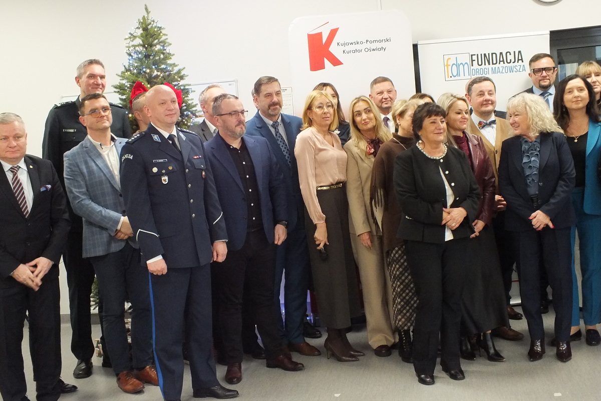 Dzisiaj (15.12.25) nadkom. Robert Jakubas – Naczelnik Wydziału Ruchu Drogowego KWP w Bydgoszczy wziął udział w uroczystym przekazaniu dyrektorom szkół podstawowych z terenu naszego województwa gier hybrydowych do nauki utrwalania zasad ruchu drogowego. Gry zostały przekazane przez Kujawsko-Pomorskiego Kuratora Oświaty oraz Fundację Bezpieczni.eu i Drogi Mazowsza w ramach projektu edukacyjnego „ROWEREM DO CELU. WYCHOWANIE KOMUNIKACYJNE. GRYWALIZACJA”.