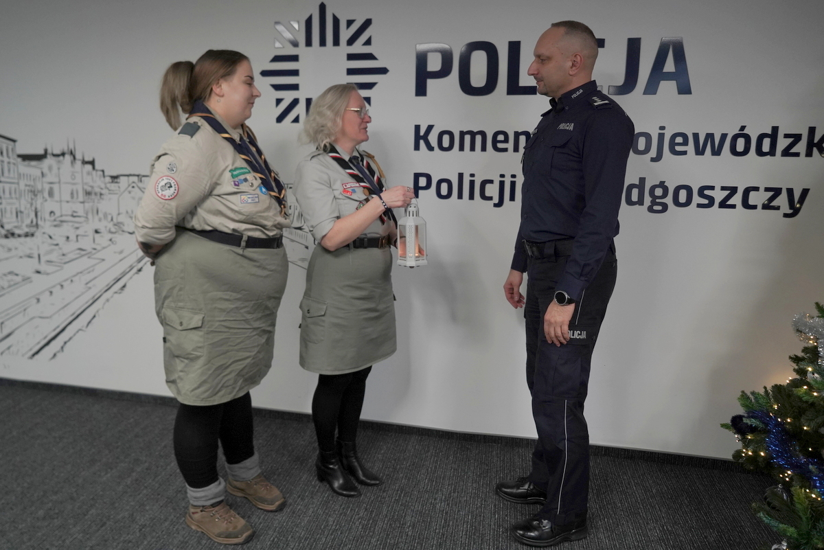 Dzięki przedstawicielom Komendy Chorągwi Kujawsko-Pomorskiego Związku Harcerstwa Polskiego, do policjantów i pracowników Policji, dotarło Betlejemskie Światło Pokoju. W imieniu funkcjonariuszy przyjął je inspektor Jakub Gorczyński Komendant Wojewódzki Policji w Bydgoszczy.