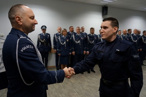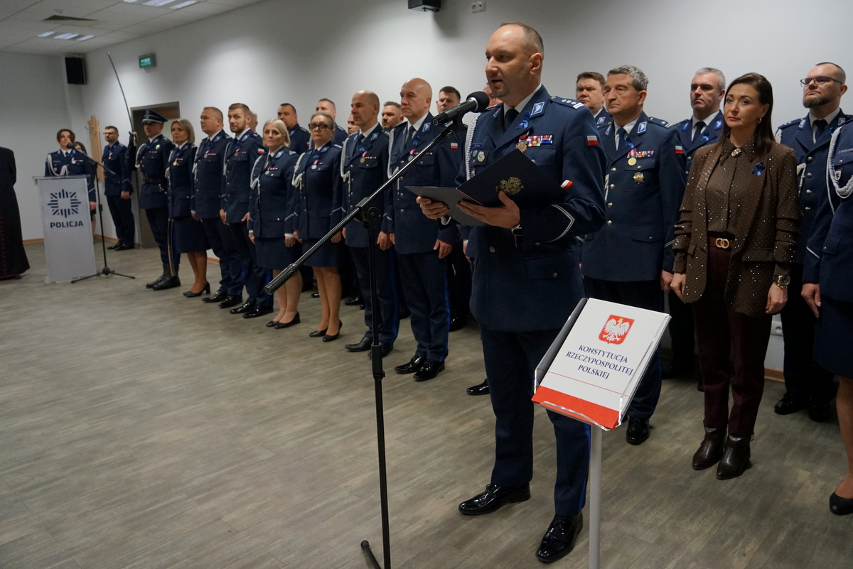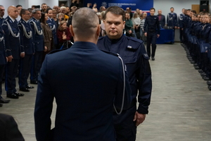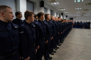 Wypowiedziane przez policjantów słowa roty ślubowania wybrzmiały w Sali odpraw Oddziału Prewencji Policji w Bydgoszczy. Inspektor Jakub Gorczyński zwrócił się do nowych oraz awansowanych funkcjonariuszy następującymi słowami: