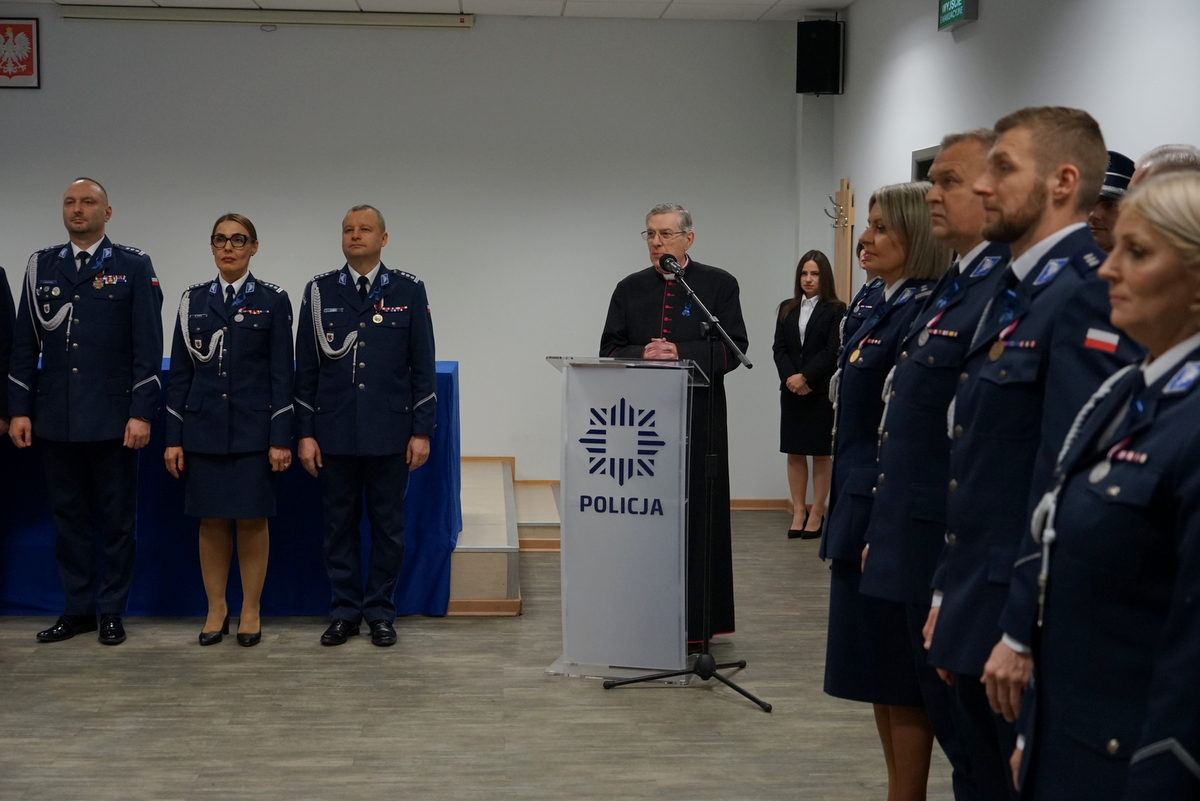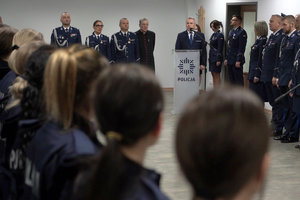 - (…) Drogie policjantki i policjanci. Zamiast wygodnego, bezpiecznego życia wybraliście służbę dla drugiego człowieka. (…) Służba w Policji nie jest zwykłą pracą. To zobowiązanie, które przyjmujecie dla innych, dla bezpieczeństwa obywateli naszej Ojczyzny. Pełnicie tę służbę z honorem, z godnością. Mundur, który założyliście nie jest tylko tkaniną. Jest symbolem! Symbolem bezpieczeństwa. (…) Pamiętajcie zawsze o tym, że pełniąc służbę, tą codzienną, jesteście oczekiwani w Waszych domach. Wasi najbliżsi będę pełnić służbę razem z Wami, nie fizycznie, ale w myślach. Dlatego zawsze o tym pamiętajcie, pamiętając o własnym bezpieczeństwie.