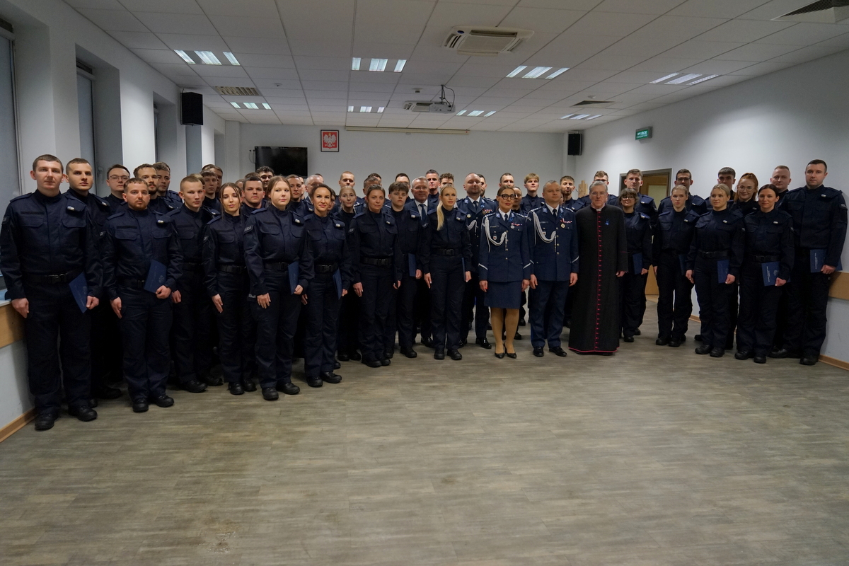 Ślubowanie poprzedziła nie mniej ważna i podniosła uroczystość, która w sali konferencyjnej Komendy Wojewódzkiej Policji w Bydgoszczy zgromadziła wiele osób.