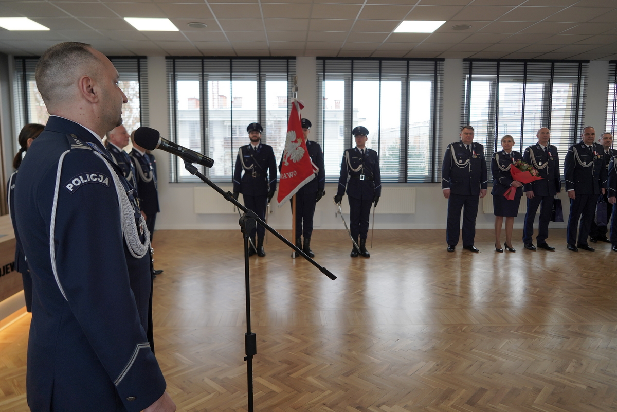 - Dzisiejsza uroczystość to pierwsze w tym roku ślubowanie nowych funkcjonariuszy Policji w garnizonie kujawsko-pomorskim, a zarazem moment, w którym w szeregi Policji wstąpili ludzie gotowi podjąć służbę na rzecz bezpieczeństwa Państwa i obywateli. (…) Wypowiadając dziś rotę ślubowania, także wy potwierdziliście swoją gotowość do pełnienia służby, która stanowi jeden z filarów prawidłowego funkcjonowania Państwa. Policja odgrywa kluczową rolę w zapewnianiu porządku publicznego, ochronie życia, zdrowia i mienia obywateli oraz w budowaniu poczucia bezpieczeństwa, bez którego nie jest możliwy stabilny rozwój lokalnych wspólnot i całego państwa. Decydując się na wstąpienie do Policji, podjęliście bardzo odpowiedzialną decyzję. Wybraliście drogę wymagającą odwagi, dyscypliny, poświęcenia i gotowości do służby drugiemu człowiekowi (…).