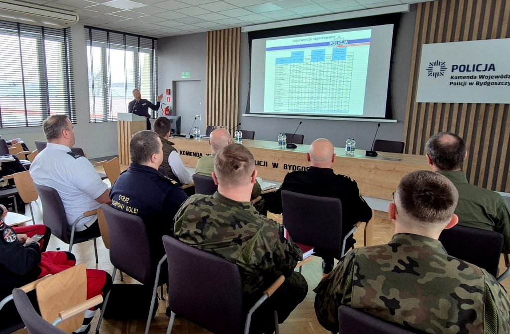 Wczoraj (9.02.26) w Komendzie Wojewódzkiej Policji w Bydgoszczy odbyła się narada służbowa Zastępcy Komendanta Wojewódzkiego Policji w Bydgoszczy inspektora Jacka Witasa z przedstawicielami podmiotów pozapolicyjnych przy udziale koordynatorów działań zewnętrznych o charakterze prewencyjnym komend miejskich i powiatowych kujawsko-pomorskiego garnizonu. Wzięli w niej udział: Komendant Wojewódzki Państwowej Straży Łowieckiej w Bydgoszczy, Komendant Regionalnej Straży Ochrony Kolei w Bydgoszczy, Komendant Placówki Straży Granicznej w Bydgoszczy, Naczelnik Wydziału Kujawsko-Pomorskiego Wojewódzkiego Inspektoratu Transportu Drogowego, Szef Wydziału Prewencji Oddziału Żandarmerii Wojskowej w Bydgoszczy, Prefekt Kujawsko-Pomorskiej Prefektury Województwa Krajowej Rady Komendantów Straży Miejskich i Gminnych, Prezes Kujawsko-Pomorskiego Wodnego Ochotniczego Pogotowia Ratunkowego, Kierownik Zespołu ds. Obronności i Ochrony Mienia Regionalnej Dyrekcji Lasów Państwowych w Toruniu, Dowódca SPKP, a także Naczelnicy Wydziału Prewencji, Ruchu Drogowego, Konwojowego, WPA, Sztabu Policji KWP w Bydgoszczy.