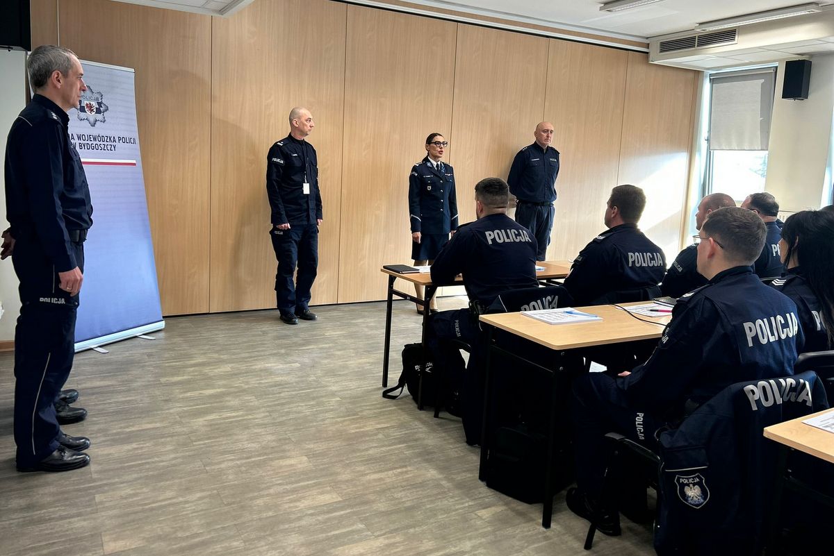 Wczoraj (2.03.26) w Komendzie Wojewódzkiej Policji w Bydgoszczy rozpoczęła się kolejna edycja szkolenia zawodowego aspiranckiego. Policjantów i policjantki przywitała na wstępie Zastępca Komendanta Wojewódzkiego Policji w Bydgoszczy insp. Małgorzata Jorka, życząc owocnej nauki i pomyślnego jej zakończenia.