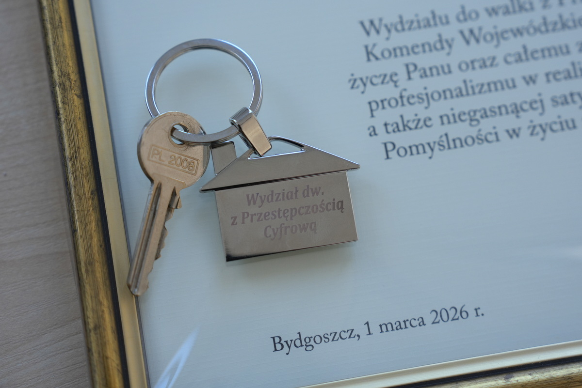W poniedziałek (02.03.2026 r.) podczas uroczystej zbiórki Komendant Wojewódzki Policji w Bydgoszczy inspektor Jakub Gorczyński symbolicznie przekazał klucze do nowego wydziału. W pionie kryminalnym naszej komendy, od 1 marca tego roku, zaczął działać Wydział do walki z Przestępczością Cyfrową. To odpowiedź na współczesne zagrożenia, ale także realizacja koncepcji zwalczania cyberprzestępczości polskiej Policji.