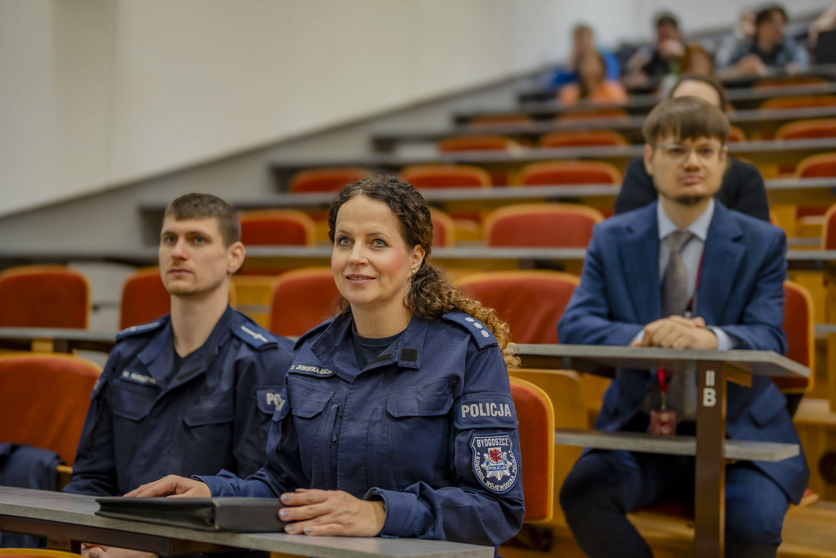 Uczestnicy mieli również okazję zapoznać się z tematyką przestępstw motywowanych uprzedzeniami, a także z zagadnieniami dotyczącymi subkultur i ich potencjalnych związków z radykalizacją oraz terroryzmem. Te zagadnienia, w swym wystąpieniu poruszyli policjanci z Wydziału Kryminalnego Komendy Wojewódzkiej Policji w Bydgoszczy.