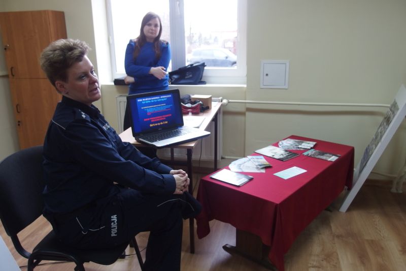 St. asp. Izabella Drobniecka omówiła niebezpieczne sytuacje, do których dochodzi na drogach na podstawie prezentacji przygotowanej przez Krajową Radę Bezpieczeństwa Ruchu Drogowego pt. „Pamiętaj, masz jedno życie!”. Rozmawialiśmy też o tym, jak zareagować gdy mamy podejrzenie, że za kierownicą siedzi pijany kierowca. Mundurowi apelowali, aby reagować choćby telefonem na Policję. Policjanci pokazali też uczestniczącym w spotkaniu promilgoogle, które pokazują to, w jaki sposób może widzieć i reagować nietrzeźwy kierowca. Rekwizyt ten miał uświadomić, że nietrzeźwy kierowca to potencjalny zabójca. Na koniec spotkania mundurowi wręczyli zebranym długopisy z numerami alarmowymi służb.