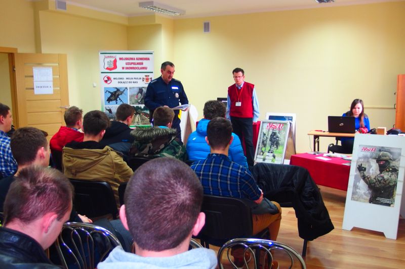 Na Powiatowej Komisji Lekarskiej w Inowrocławiu, w ramach kwalifikacji wojskowej dla rocznika 1996r, na spotkanie przyszli policjanci z inowrocławskiej komendy.