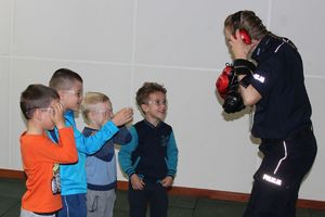 Najwięcej frajdy było na strzelnicy, gdzie przedszkolaki oglądały sprzęt i mogły na własnych gardłach sprawdzić skuteczność wygłuszenia jej ścian. Obejrzały także salkę treningową do ćwiczenia technik i taktyk interwencji oraz siłownię.