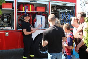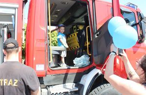 W sobotniej akcji „Kręci mnie bezpieczeństwo” wzięli też udział lipnowscy funkcjonariusze Straży Pożarnej, dzięki którym można było obejrzeć z bliska strażackie wozy, a nawet wcielić się w rolę strażaka siadając za kółkiem czerwonego samochodu służbowego.