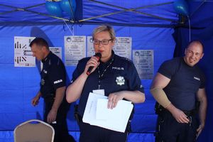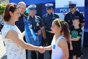 Policjanci przygotowali konkurs rysunkowy, w dwóch kategoriach wiekowych, którego tematem było szeroko pojęte bezpieczeństwo. Każdy biorący w nim udział mógł wybrać sobie policyjny gadżet. Duże emocje budził konkurs przygotowany przez policjantów ruchu drogowego, w którym trzeba było pokonać na rowerze dość trudny tor przeszkód połączony ze znajomością znaków drogowych. Na koniec także dorośli mogli popisać się wiedzą, bo funkcjonariusze "drogówki" przygotowali dla nich niełatwy test.